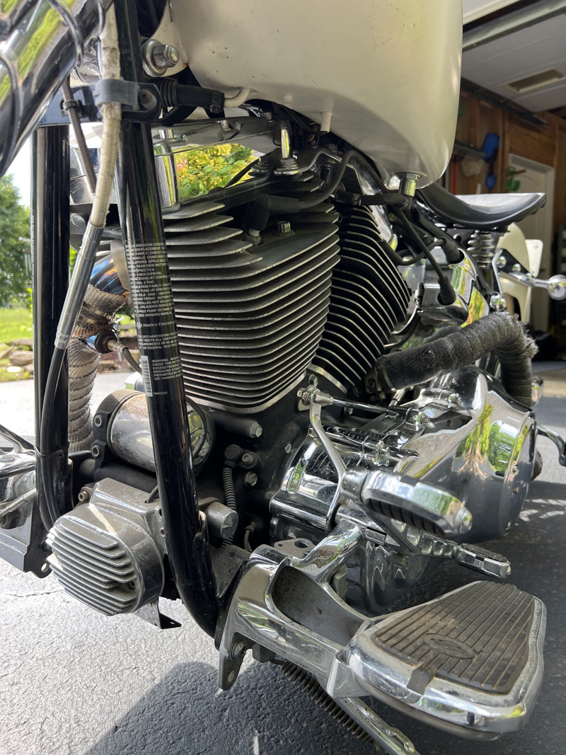 The bike **starts and runs** with the new battery, but it hasn’t been ridden recently. It’s been garage-kept and is in nice shape overall. There is some **light oxidation in spots**, but nothing that can’t be cleaned up or swapped out if desired. Some small wear marks on seat. It has been started a few times but really has just been sitting for a while so yes, the engine does need a good outer cleaning. Maybe a tune up.