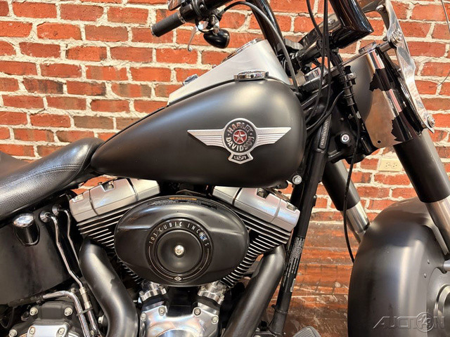 2012 Harley-Davidson® Softail® Fat Boy® LoThe 2012 Harley-Davidson® Fat Boy® Lo FLSTFB has all the features you expect on custom Harley® motorcycles. Hearkening to the 'hardtail' choppers of the '60s and '70s, the Fat Boy® Lo is one of the custom Harley® motorcycles that keeps that heritage alive more than forty years later. And this special edition shows a darker side of the original 'fat custom' bike—laid-back and blacked-out with an unmistakable profile on the road. New for 2012, the Harley® Fat Boy® Lo features a powerful, new larger air-cooled Twin Cam 103™ Harley® engine with 6 speed cruise drive tranmission, providing more performance power for passing, hill-climbing, and riding with passenger and luggage.Features may include:FAT CUSTOM STYLEHearkening to the "hardtail" choppers of the '60s and '70s, the Fat Boy® Lo model keeps that heritage alive more than forty years later. And this special edition shows a darker side of the original "fat custom" bike—laid-back and blacked-out with an unmistakable profile on the road. But the nostalgic style isn't just about the confident stance, paint and old-school detail. It's how you look riding it. It's how it feels. It's the classic, relaxed riding position that speaks volumes. You're not just cruising. You're in charge—kicked back on a throne of machined metal surveying your domain.FAT FEATURESBig in all the right places. The 17-inch wheels of black, bullet-hole, disc-cast aluminum definitely make an impression—especially with rubber 140mm wide in front and a beefy 200mm in back. And check out the chopsticks up front—fat front fork behind the huge, gorgeous headlamp. The handlebars are wide, giant stainless steel with bare-knuckle satin chrome risers. It's a lot of fat in one tight bike. Definitely meaty. Wide. Big-boned. A bruiser. Call it what you want. Just admit that you want it.BLACKED OUT FINISHESYou might say black is the new chrome when it comes to the Fat Boy® Lo model. There's black denim finish on the frame, swingarm, front shock covers, derby cover, horn cover, coil cover, oil tank and air cleaner cover. Black, bullet-hole disc-cast aluminum wheels with black centers and matching outer rims. Flat-black exhaust shields on the satin chrome shotgun exhaust. Gloss black half-moon footboards. Even blacked-out mirrors and headlamp. And black powder-coating on the powertrain with satin chrome accents finishes the job. With all this paint, you won't just be riding fat and low. You'll be throwing shade all the way.HIDDEN REAR SHOCKSIf you want a comfortable bike but love that rigid-suspension look, you've come to the right bike. We've kept all the modern comforts where they belong—below the surface of a rad, vintage-looking bike. You get the classic lines of a vintage "hardtail" frame with the horizontal rear shocks hidden in the guts. It's a signature rigid look, and you'll only find it on a Softail® model.FAT CUSTOM TANK DETAILSThis tank makes a statement with its leather tank strap, satin chrome side badges, and satin chrome speedometer and ignition switch console. The speedo face boasts a big, bold display for the odometer and an ancillary display for gear and rpm, so all the info you need on the fly is yours at a glance.