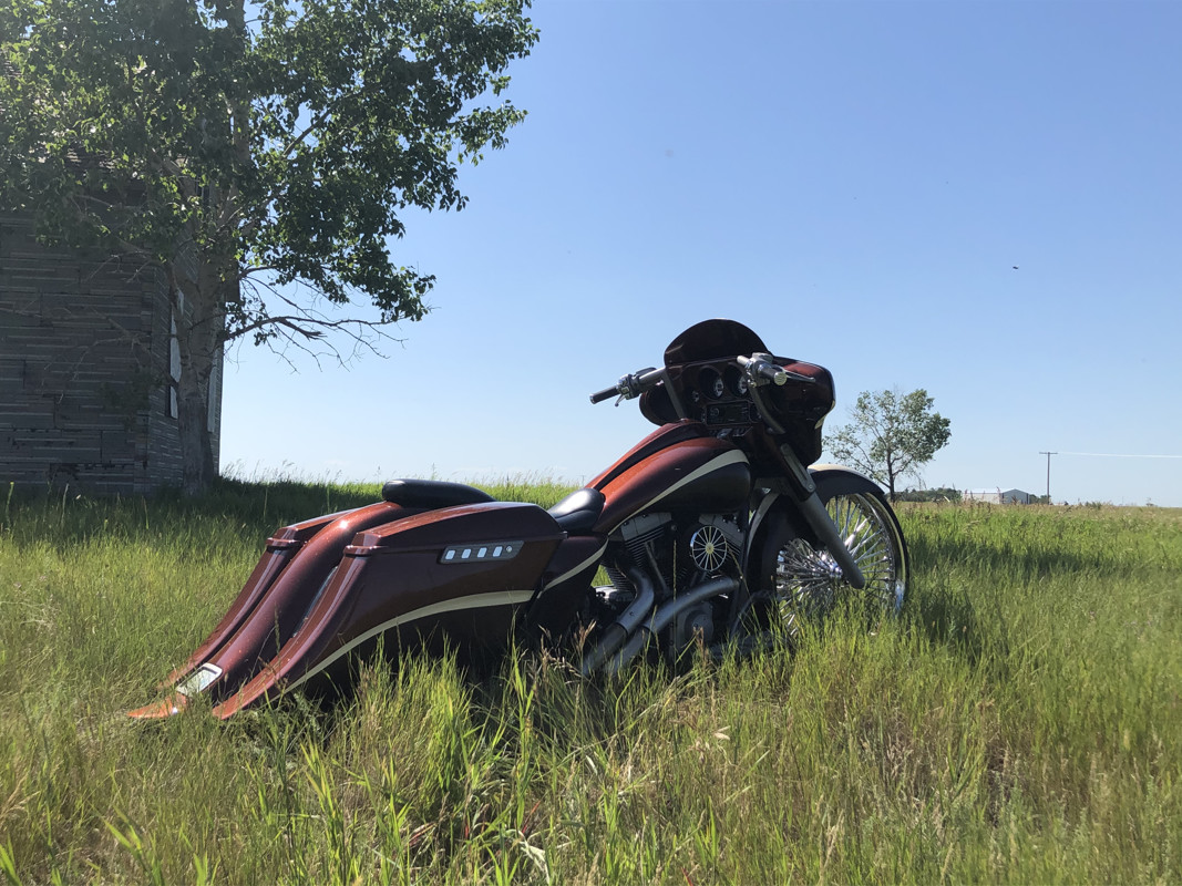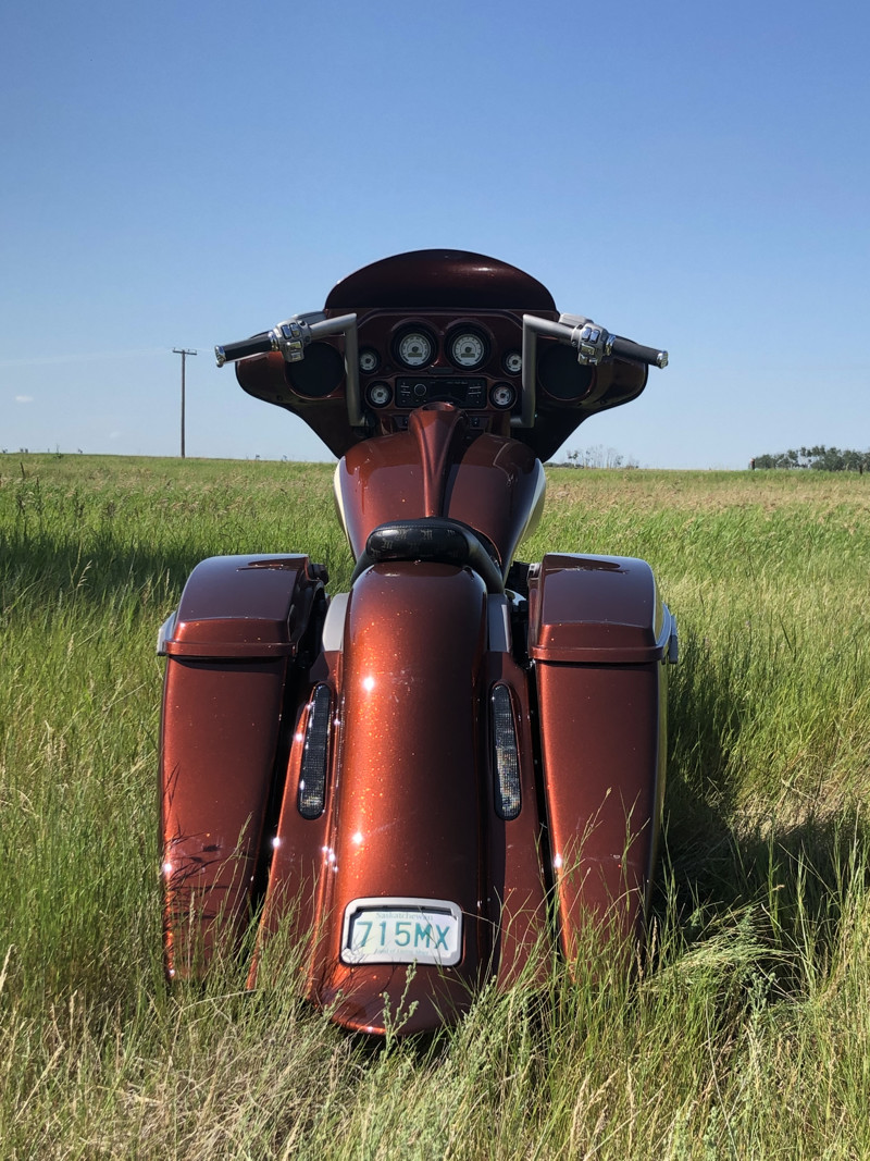 18” Misfit Industries handlebars c/w hidden control wiring brake and clutch lines.