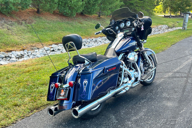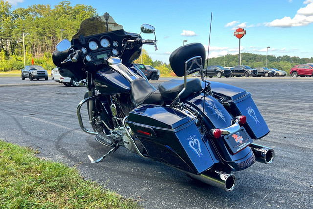 2012 Harley-Davidson® Street Glide®The 2012 Harley-Davidson® Street Glide® FLHX is equipped with an iconic bat wing fairing giving this custom hot rod bagger an amazing Harley® style that needs to be seen and ridden. New for 2012 the Harley® Street Glide® FLHX features a powerful, new, larger air-cooled Twin Cam 103™ Harley® engine with 6 speed cruise drive transmission, providing more performance power for passing, hill-climbing, and riding with passenger and luggage. Check out all of the Harley-Davidson® Street Glide® FLHX specs and features and see why this bike is meant for motorcycle touring.Features may include:CLASSIC FUEL TANKPart of the unmistakable style of the Harley-Davidson® Street Glide® motorcycle is plenty of room for showing off your paint. This classically styled, bold six-gallon fuel tank doesn't just give you a bigger canvas for premium or custom paint; it holds six gallons of go so you can eat up a lot more road between pit stops. We know fuel economy is important—but so is style. Sharp, eye-catching colors and precision-crafted Harley-Davidson® tank medallions complete the unique look of this tough bagger.BAT-WING FAIRINGDesigned by Chief Styling Officer Willie G. Davidson, the nimble, fork-mounted Bat-Wing fairing first appeared on the touring scene back in 1969. And it continues to evolve and symbolize the essence of Grand American Touring motorcycles more than forty years later. A lower profile, smoked windscreen with a unique contour adds to the distinctive look of the Street Glide® model.GTX® SADDLEBAGSThese injection-molded hard bags have room for 2.26 cu. ft. volume of long-haul luxuries and a perfect surface for showing off some premium paint. Exclusively on the Street Glide® model, saddlebag latches and hardware are painted to match the bike's color instead of a more chromed-out look. Even better, these saddlebags open from the top, so your gear won't end up spilled all over the highway. They keep your fancy unmentionables dry, and the color-matched latches won't corrode in bad weather. And when you're off the road, one common key starts the bike and gives you access to your saddlebags, keeping your pockets as uncluttered as your bike's classic design.CUSTOM REAR TAILLIGHT AND FASCIAWe keep the back end clean and no-nonsense with tri-line fender lights—a brilliant, unique taillight as the centerpiece—plus ground effects and a low mounted license plate with LED lighting for crisp visibility and style. This completes the custom, one-of-a-kind look.