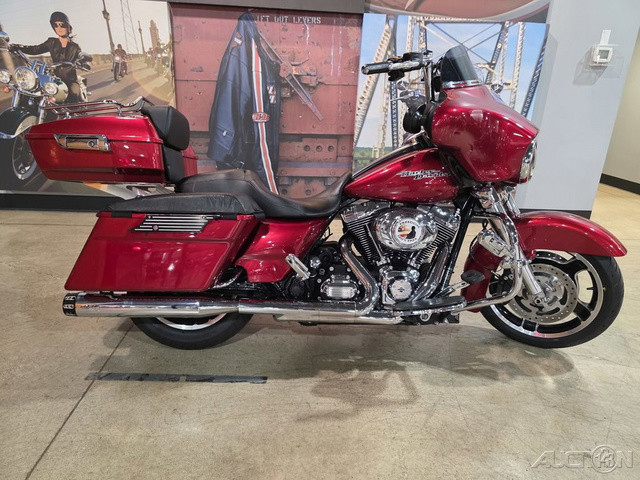 2012 Harley-Davidson® Street Glide®The 2012 Harley-Davidson® Street Glide® FLHX is equipped with an iconic bat wing fairing giving this custom hot rod bagger an amazing Harley® style that needs to be seen and ridden. New for 2012 the Harley® Street Glide® FLHX features a powerful, new, larger air-cooled Twin Cam 103™ Harley® engine with 6 speed cruise drive transmission, providing more performance power for passing, hill-climbing, and riding with passenger and luggage. Check out all of the Harley-Davidson® Street Glide® FLHX specs and features and see why this bike is meant for motorcycle touring.Features may include:CLASSIC FUEL TANKPart of the unmistakable style of the Harley-Davidson® Street Glide® motorcycle is plenty of room for showing off your paint. This classically styled, bold six-gallon fuel tank doesn't just give you a bigger canvas for premium or custom paint; it holds six gallons of go so you can eat up a lot more road between pit stops. We know fuel economy is important—but so is style. Sharp, eye-catching colors and precision-crafted Harley-Davidson® tank medallions complete the unique look of this tough bagger.BAT-WING FAIRINGDesigned by Chief Styling Officer Willie G. Davidson, the nimble, fork-mounted Bat-Wing fairing first appeared on the touring scene back in 1969. And it continues to evolve and symbolize the essence of Grand American Touring motorcycles more than forty years later. A lower profile, smoked windscreen with a unique contour adds to the distinctive look of the Street Glide® model.GTX® SADDLEBAGSThese injection-molded hard bags have room for 2.26 cu. ft. volume of long-haul luxuries and a perfect surface for showing off some premium paint. Exclusively on the Street Glide® model, saddlebag latches and hardware are painted to match the bike's color instead of a more chromed-out look. Even better, these saddlebags open from the top, so your gear won't end up spilled all over the highway. They keep your fancy unmentionables dry, and the color-matched latches won't corrode in bad weather. And when you're off the road, one common key starts the bike and gives you access to your saddlebags, keeping your pockets as uncluttered as your bike's classic design.CUSTOM REAR TAILLIGHT AND FASCIAWe keep the back end clean and no-nonsense with tri-line fender lights—a brilliant, unique taillight as the centerpiece—plus ground effects and a low mounted license plate with LED lighting for crisp visibility and style. This completes the custom, one-of-a-kind look.