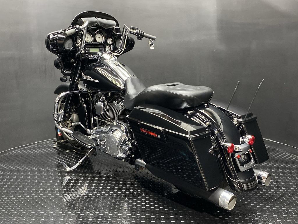 YOU ARE LOOKING AT A 2012 HARLEY DAVIDSON STREET GLIDE (FLHX) WITH 44,259 MILES ON IT. IT IS VIVID BLACK IN COLOR AND POWERED BY A 1690CC (103") FUEL INJECTED ENGINE AND 6 SPEED TRANSMISSION. THE BIKE COMES WITH ABS BRAKES, CRUISE CONTROL, 1 KEY, 1 FOB, AND FACTORY SECURITY SYSTEM. THERE ARE SOME EXTRAS ON THE BIKE WHICH INCLUDE LA CHOPPER SLIP-ON MUFFLERS ($424.95), SUNDOWNER SEAT ($379.95), HIGHWAY PEGS ($179.95), LED HEADLIGHT ($524.95), PASSING LAMPS ($384.95), FAIRING ACCENT LIGHTS ($199.95), 2 POCKET WINDSHIELD POUCH ($67.95), AND APE HANGER BARS ($1,500 INSTALLED). THERE ARE NO DENTS OR DINGS THAT I CAN FIND. THERE ARE TOUCHUPS ON THE FRONT FENDER, FRONT FAIRING, TANK, REAR FENDER, AND SADDLEBAGS. THE CHROME AND ALUMINUM ARE IN GOOD CONDITION WITH THE EXCEPTION OF TOUCHUPS ON THE FORK LOWERS. THE TIRES HAVE GOOD TREAD LEFT ON THEM.