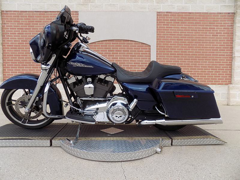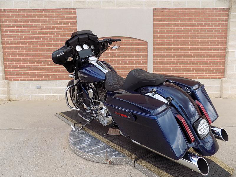 The 2012 H-D Street Glide Touring is a striking motorcycle that combines classic Harley-Davidson styling with modern touring capabilities. This used model, with an odometer reading of 49,706 miles, is a testament to its durability and the adventures it has embarked upon. Its exterior is finished in a captivating Big Blue Pearl color, which adds a touch of elegance and flair to its robust design.