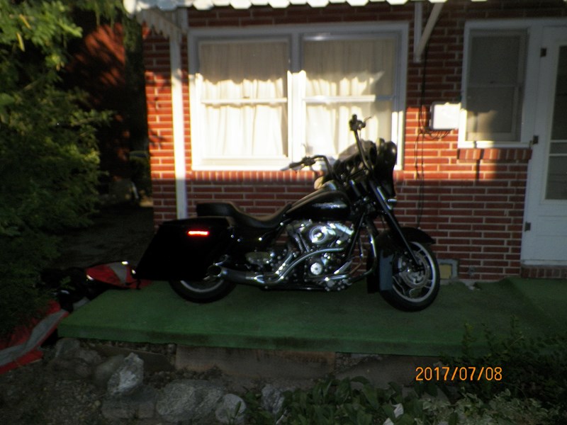 saddle bag speakers, 14 inch apes, dirty bird up yours exhaust, extended saddle bags, low miles black forks,
