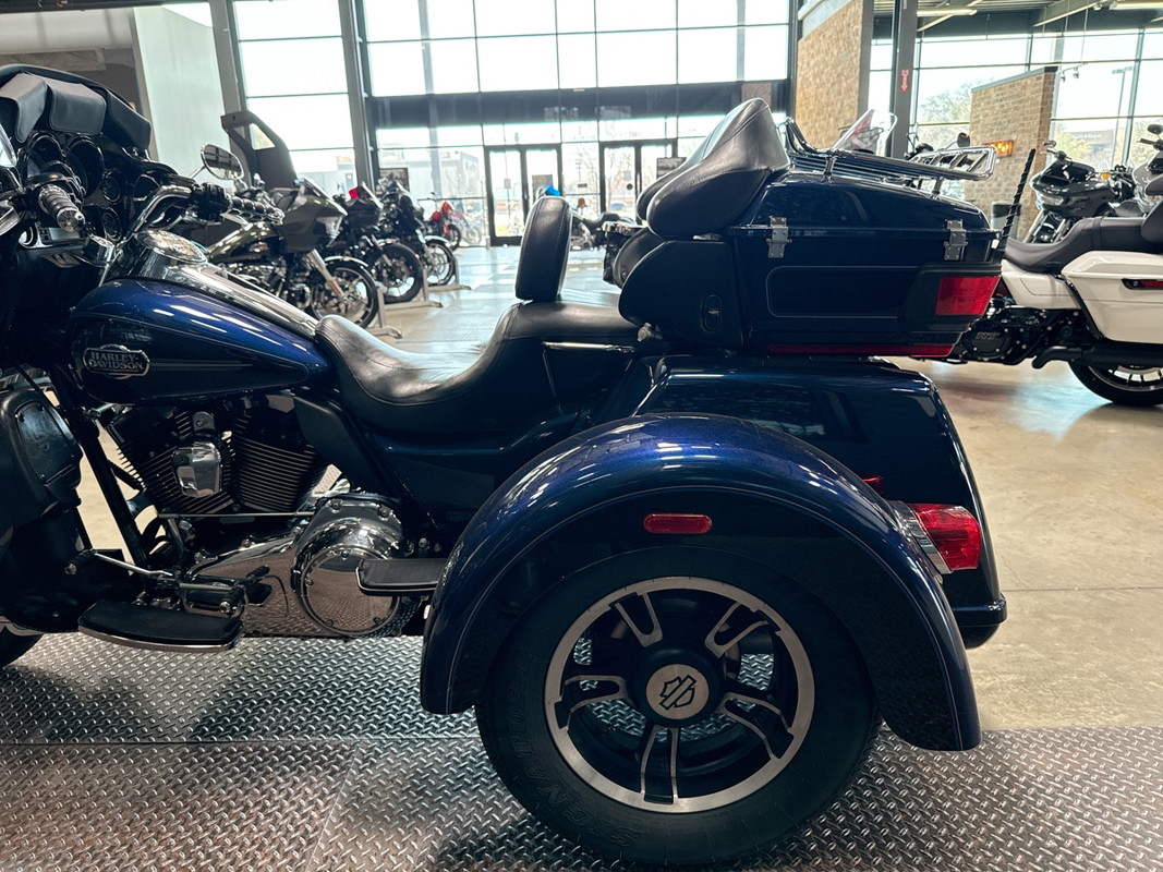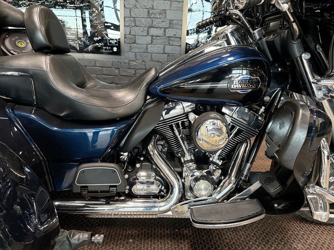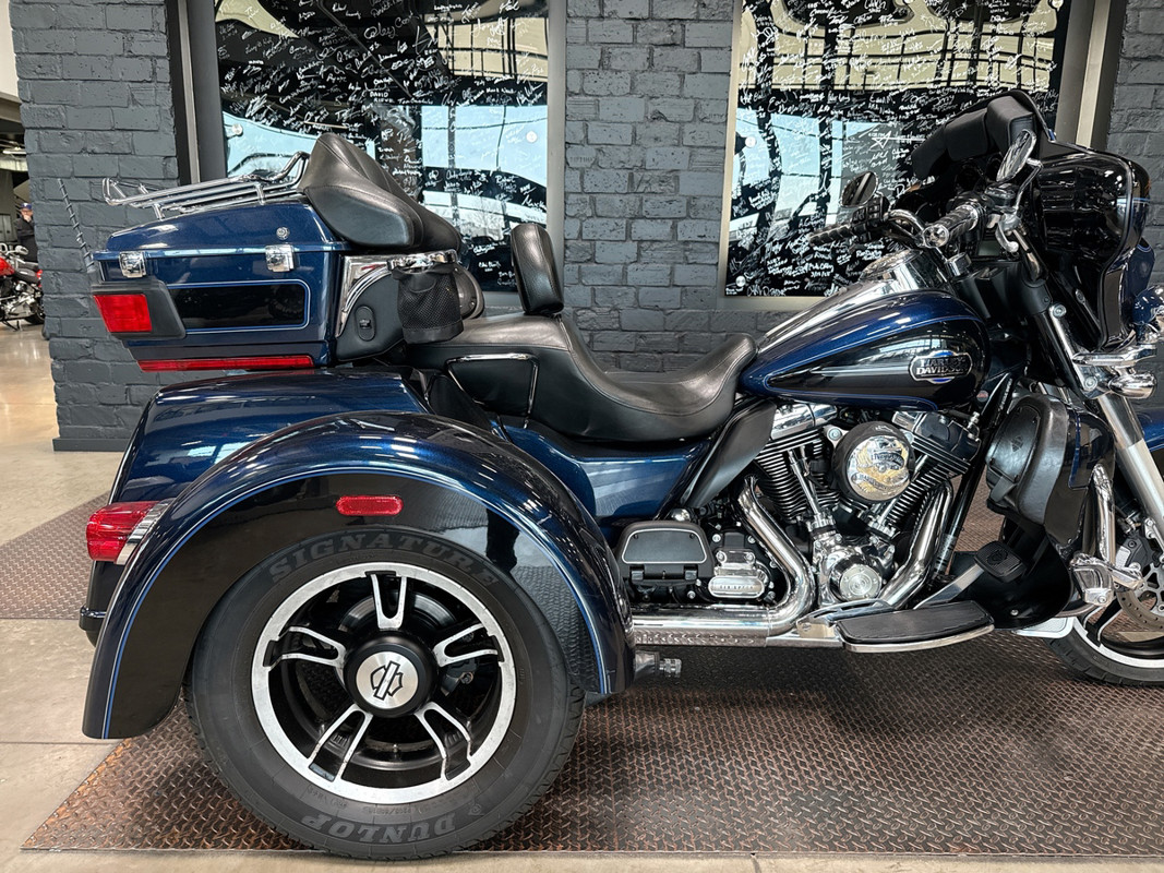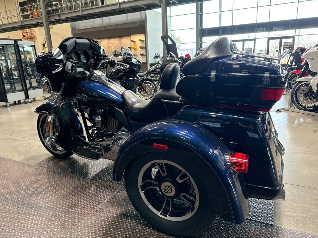 Experience the road like never before with the 2012 Harley-Davidson Tri Glide Ultra Classic. Embrace the open road and the freedom that comes with it, as you embark on adventures with this iconic trike. Finished in a striking Big Blue/Vivid Black with Pinstripe exterior, this trike is sure to turn heads and spark conversations amongst fellow riders.