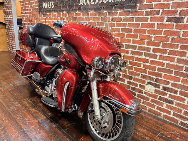 2012 Harley-Davidson® Electra Glide® Ultra ClassicThe 2012 Harley Ultra Classic Electra Glide FLHTCU provides touring style with many upgrades. New for 2012, the Harley Ultra Classic Electra Glide features a powerful, new, larger air-cooled Twin Cam 103 Harley engine with 6 speed cruise drive tranmission, providing more performance power for passing, hill-climbing, and riding with passenger and lugagge. The Harley Ultra Classic Electra Glide offers two types of motorcycles wheels. The optional motorcycle wheels offered on the Ultra Classic Electra Glide can give this bike a different look so be sure to check them out in the Paint & Wheels section. This motorcycle also has many valuable standard options as well, such as the Tour-Pak motorcycle luggage capacity.Features may include:CLASSIC FUEL TANKPart of the unmistakable style of the Harley-Davidson® Ultra Classic® Electra Glide® motorcycle is plenty of room for showing off your paint. This classically styled, bold six-gallon fuel tank doesn't just give you a bigger canvas for premium or custom paint; it holds six gallons of go so you can eat up a lot more road between pit stops. We know fuel economy is important—but so is style. A dual-color paint scheme, crisp pinstripes and unique Harley-Davidson® tank medallions give this ride a one-of-a-kind look.BAT-WING FAIRINGDesigned by Chief Styling Officer Willie G. Davidson, the nimble, fork-mounted Bat-Wing fairing first appeared on the touring scene back in 1969. And it continues to evolve and symbolize the essence of Grand American Touring motorcycles more than forty years later. The full 8-inch windscreen gives it that classic touring profile and additional comfort. Simply put, the wind is not a factor for the mile-hungry rider who wants to soak up the freedom of the open road for days on end.GTX® SADDLEBAGSThese injection-molded hard bags have room for 2.26 cu. ft. volume of long-haul luxuries and a perfect surface for showing off some premium paint. Even better, these saddlebags open from the top, so your gear won't end up spilled all over the highway. They keep your fancy unmentionables dry, and the chrome latches won't corrode in bad weather. Stunning chrome guards on the saddlebags are only available on the Electra Glide® Classic and Ultra Classic® Electra Glide®. And when you're off the road, one common key starts the bike and gives you access to your saddlebags, keeping your pockets as uncluttered as your bike's classic design.LARGE 17-INCH FRONT WHEELIf you crave long-haul agility on rides of all distances, then you're going to love this. Starting on the 2009 Touring models, we beefed things up a bit, adding a big, mighty wheel with a low aspect ratio. That means the bike maintains its legendary tight turning radius, balanced feel and superior low-speed maneuverability.TWIN CAM 103™ ENGINE HERITAGEThe knowledge of what makes an engine truly move a rider runs deep at The Motor Company, and it was put to good use when we created the Twin Cam 103™; engine. We sweated bullets perfecting every cubic inch, pushing design and technology forward. And we did it all without compromising one bit of Harley-Davidson®'s unique styling. Evolved, yet carrying on the legacy of the Flathead, Knucklehead, Panhead, Shovelhead, Evolution®, Twin Cam 88®; and Twin Cam 96™ engines that came before. The performance and durability are a direct result of the untold miles logged on the V-Twin since 1909, and the proud heritage that comes from a century's worth of commitment to life on two wheels.