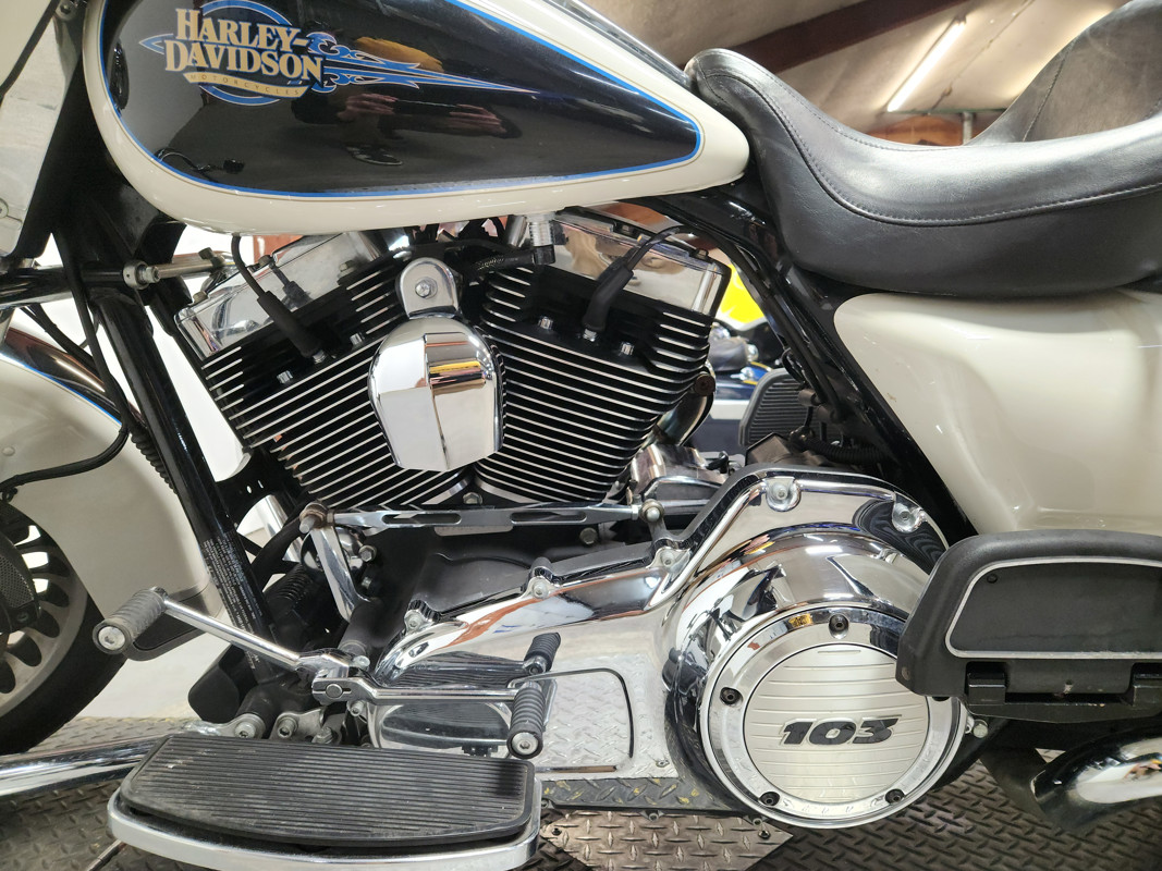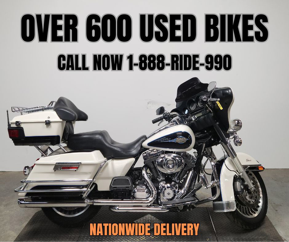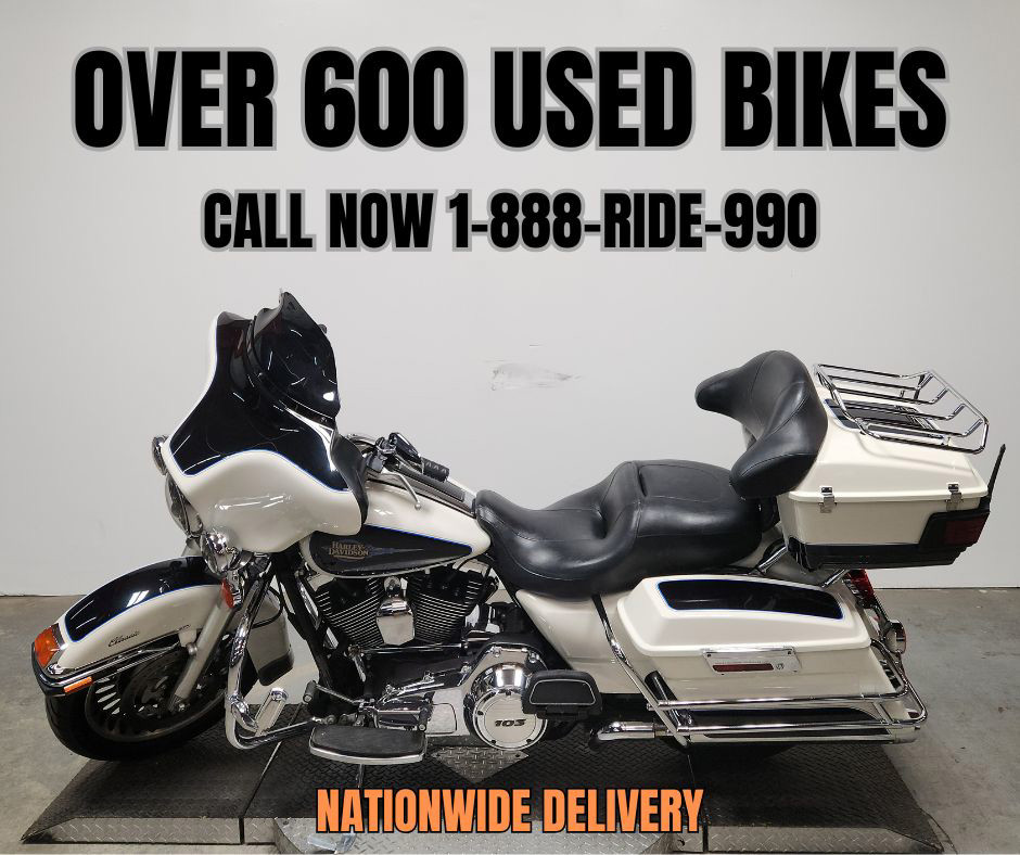 FINISHED IN "WHITE/MIDNIGHT PEARL", THIS ELECTRA GLIDE ULTRA CLASSIC IS A CLEAN, ALL-STOCK EXAMPLE THAT HAS BEEN WELL CARED FOR! 57,460 MILES! RECENTLY SERVICED AT DEALERSHIP, INCLUDING FULL INSPECTION AND ALL FLUIDS CHANGED! SMOOTH, COMFORTABLE TOURING BIKE THAT’S READY TO RIDE WITH CLASSIC HARLEY FIT AND FINISH!