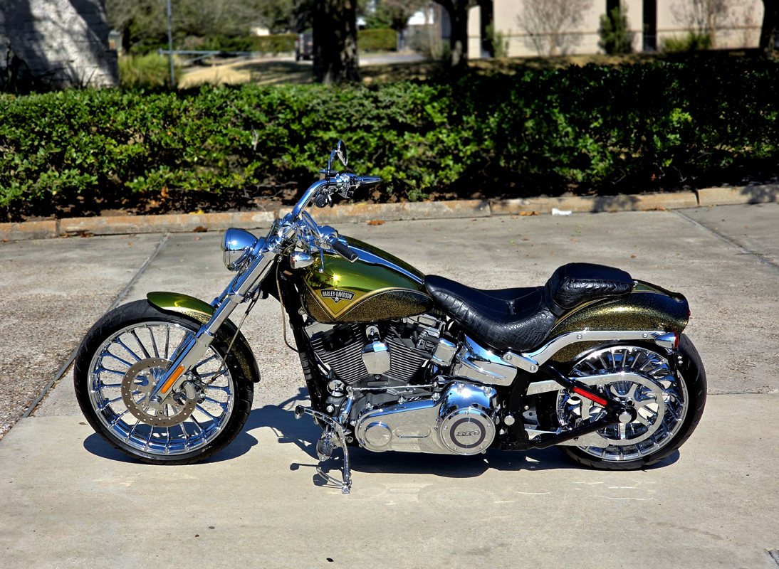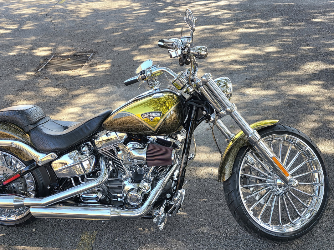 Up for sale is my Rare Extremely Clean 1-Owner Hard Candy Gold Dust and Liquid Sun with Pagan Gold 2013 Harley-Davidson CVO Breakout with only 2,091 original miles!