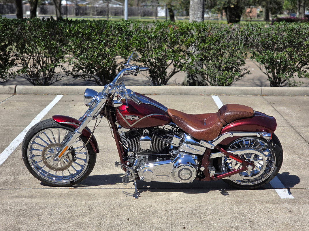 Up for sale is my Crimson Red Sunglo with Scarlet Lace 2013 Harley-Davidson CVO Breakout with only 10,646 miles!