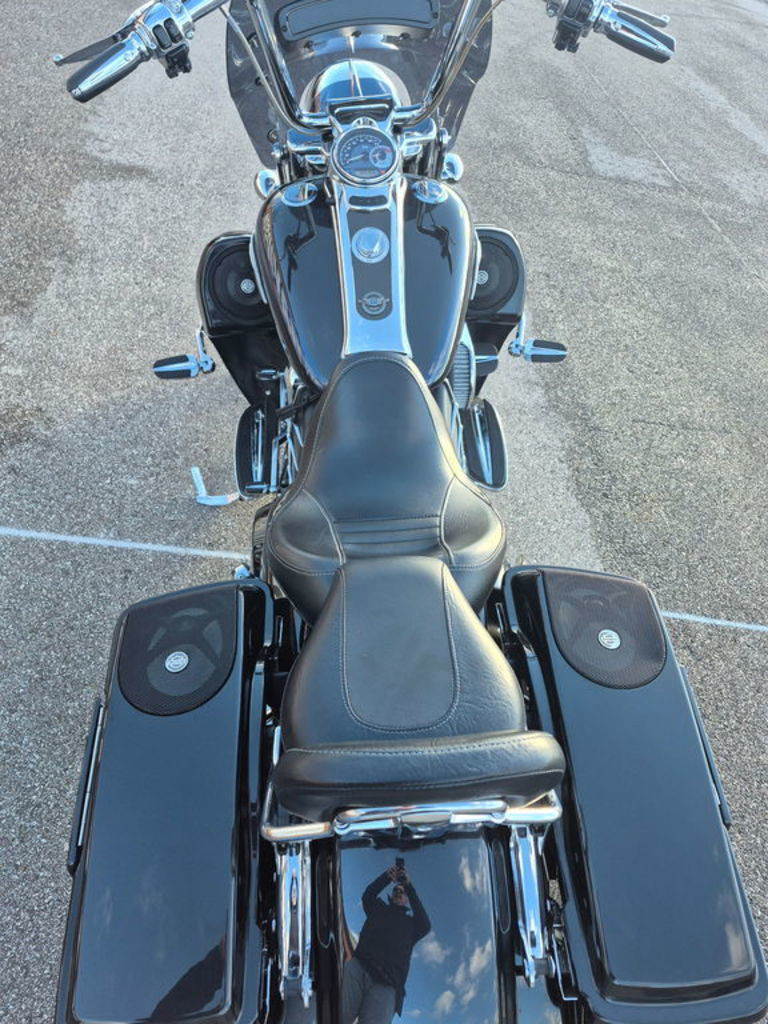 The 2013 Harley-Davidson® CVO™ Road King® FLHRSE5 model is the ultimate hot rod boom bagger. It packs a premium audio system that plays through speakers in the fairing lowers and saddlebag lids. For 2013, the CVO™ Road King® model comes in an even more limited availability, serialized 110th Anniversary Special Edition, featuring exclusive commemorative anniversary styling elements, premium features and finely forged finishes that make it a top-of-the-line model and a true work of motorcycle art. The FLHRSE5 Road King® model CVO™ has a detachable short custom wind deflector that cuts the wind for more comfortable riding. The H-D® CVO™ Road King® model offers custom extended saddlebags that add to the bike's premium touring capabilities, and custom-style Agitator wheels that add to its bold boulevard style. The Twin Cam 110™ engine with Screamin' Eagle badges provides 110 cubic inches of power, a low cruising rpm, and lots of low end torque, along with silky smooth shifting of its 6-speed cruise drive transmission. Chrome touring mufflers are a beautiful set of pipes that look great, sound impressive and keep rider and passenger safe from exhaust heat. The two-piece low profile saddle is available in solo or two-rider configurations, in leather styling the makes a unique custom statement.