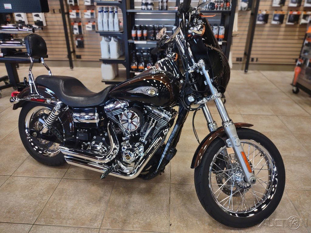 2013 Harley-Davidson® Dyna® Super Glide® Custom 110th Anniversary EditionThe 2013 Harley-Davidson® Dyna® Super Glide® Custom FXDC model is a bike with the power you need and all the Harley® chrome you want. The Super Glide® Custom motorcycle holds true to its name with unique, custom styling features from tire to tire. For 2013, the Dyna® FXDC model comes in a limited, serialized 110th Anniversary Special Edition, featuring exclusive commemorative anniversary styling elements and premium features that make it a top-of-the-line model and a true work of living art, with finely forged finishes that age and transform in a manner unique to each vehicle. The tank-mounted gauges engulfed in chrome, authentic leather fuel tank panel, unique battery box cover, solid stainless steel pullback handlebar, and fuel tank medallion that oozes iconic H-D® attitude all make this bike one-of-a-kind. Powering this Harley® Dyna® bike is a black and chrome Twin Cam engine. For a custom look the engine has chrome rocker covers, highlighted fins on the cylinders, and powder coated cylinder heads. For lots of Harley® chrome and a smokin' Harley® deal this is your custom Harley®. If you are interested in chopper motorcycles also learn about the Dyna® Wide Glide chopper motorcycle. Or if you're interested in a bobber motorcycle, the Dyna® Street Bob model has a classic bobber motorcycle look. Another big twin Dark Custom motorcycle option is the Fat Bob® model. It is full of big V-Twin engine power and it gives you that big motorcycle feel.Premium Custom StylingFrom wheel to wheel, the Super Glide® Custom® motorcycle is a chromed out feast for the eyes, blazing with high-end finishes as it holds true both to its heritage and its custom designation. Its powertrain highlighted by machined cooling fin tips and chrome rocker covers. Its tank-mounted gauges engulfed in chrome. Its solid stainless steel pullback handlebars, polished fuel tank medallion and iconic battery box cover gleaming with iconic Harley-Davidson® attitude. And the 110th Anniversary Edition's Smoothie Laced wheels add even more gleam—chrome-laced, tubeless and featuring a distinctive smooth profile and an extruded aluminum rim, they look great and are lighter than traditional steel wheels with tubes. These premium touches make this a one-of-a-kind custom ride—not to mention a smokin' deal.Twin Cam 96™ Engine HeritageThe knowledge of what makes an engine truly move a rider runs deep at The Motor Company, and it was put to good use when we created the Twin Cam 96™ engine. We sweated bullets perfecting every cubic inch, pushing design and technology forward. And we did it all without compromising one bit of Harley-Davidson®'s unique styling. Evolved, yet carrying on the legacy of the Flathead, Knucklehead, Panhead, Shovelhead, Evolution® and Twin Cam 88® engines that came before. The performance and durability are a direct result of the untold miles logged on the V-Twin since 1909, and the proud heritage that comes from a century's worth of commitment to life on two wheels.Artfully Hidden TechnologyHarley-Davidson® leverages the latest in technology without compromising style and function. That means we hide electronics. The whole wiring harness is skillfully routed behind the jewels of the bike—the tank, engine and all the other eye-popping features you want to see. It's just another way The Motor Company goes the extra mile to give its bikes that premium, top-of-the-line fit and finish.Adjustable SuspensionPreload is easily adjusted with a spanner wrench to make your suspension suit you and your riding style. The slammed low rear suspension gives you a more laid-back riding position and style. Low-profile, kicked back for profiling down the boulevard and hugging corners.