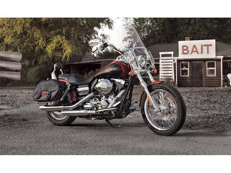 The 2013 Harley-Davidson® Dyna® Super Glide® Custom FXDC model is a bike with the power you need and all the Harley® chrome you want. The Super Glide Custom motorcycle holds true to its name with unique, custom styling features from tire to tire. For 2013, the Dyna FXDC model comes in a limited, serialized 110th Anniversary Special Edition, featuring exclusive commemorative anniversary styling elements and premium features that make it a top-of-the-line model and a true work of living art, with finely forged finishes that age and transform in a manner unique to each vehicle. The tank-mounted gauges engulfed in chrome, authentic leather fuel tank panel, unique battery box cover, solid stainless steel pullback handlebar, and fuel tank medallion that oozes iconic H-D® attitude all make this bike one-of-a-kind. Powering this Harley Dyna bike is a black and chrome Twin Cam engine. For a custom look the engine has chrome rocker covers, highlighted fins on the cylinders, and powder coated cylinder heads. For lots of Harley chrome and a smokin' Harley deal this is your custom Harley. If you are interested in chopper motorcycles also learn about the Dyna Wide Glide® chopper motorcycle. Or if you're interested in a bobber motorcycle, the Dyna Street Bob® model has a classic bobber motorcycle look. Another big twin Dark Custom™ motorcycle option is the Fat Bob® model. It is full of big V-twin engine power and it gives you that big motorcycle feel.