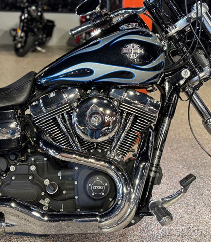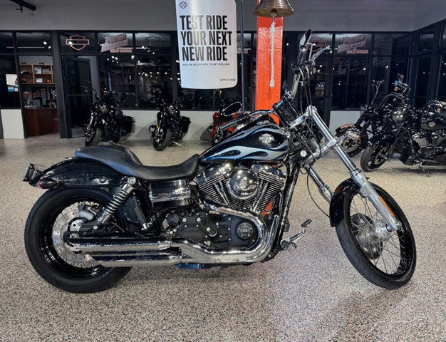 2013 Harley-Davidson® Dyna® Wide Glide®The 2013 Harley-Davidson® Dyna® Wide Glide® FXDWG model is full of classic chopper motorcycle style. The Harley® Dyna® Wide Glide® model features a powerful air-cooled Twin Cam 103™ Harley® engine with 6 speed cruise drive transmission, providing more power for passing, hill-climbing, and riding with passenger and cargo. In front is a long and raked out fork with a 21 inch wheel, giving this model quintessential chopper motorcycle style. And in the back, the Harley® Wide Glide® model features a side mounted license plate for added custom chopper motorcycle style. Want even more factory custom style on your chopper motorcycle? This bike also features an optional classic flame design on the fuel tank. Select the flames on the Harley-Davidson® Wide Glide® chopper motorcycle for a factory custom look at an affordable Harley® price. Learn more about the Harley® Wide Glide® model or other Harley® cruiser motorcycles like the Super Glide Custom Harley-Davidson® motorcycle and the Fat Bob model that has a big motorcycle feel. For a classic bobber motorcycle take a look at the Street Bob model. Check out all of the Dyna® motorcycles and find a bike right for you. Dyna® Wide Glide®The Wide Glide® motorcycle's Vivid Black finish is pure and mean, but if you want to make a hotter statement, you can relive the 1970's with the nostalgic 'flame' design on the fuel tank. This optional custom look applied by The Motor Company is guaranteed to get stares from envious cagers who spot you blazing down the streets.Twin Cam 103™ Engine HeritageThe knowledge of what makes an engine truly move a rider runs deep at The Motor Company, and it was put to good use when we created the Twin Cam 103™; engine. We sweated bullets perfecting every cubic inch, pushing design and technology forward. And we did it all without compromising one bit of Harley-Davidson®'s unique styling. Evolved, yet carrying on the legacy of the Flathead, Knucklehead, Panhead, Shovelhead, Evolution®, Twin Cam 88®; and Twin Cam 96™ engines that came before. The performance and durability are a direct result of the untold miles logged on the V-Twin since 1909, and the proud heritage that comes from a century's worth of commitment to life on two wheels.Artfully Hidden TechnologyHarley-Davidson® leverages the latest in technology without compromising style and function. That means we hide electronics. The whole wiring harness is skillfully routed behind the jewels of the bike—the tank, engine and all the other eye-popping features you want to see. It's just another way The Motor Company goes the extra mile to give its bikes that premium, top-of-the-line fit and finish.Adjustable SuspensionPreload is easily adjusted with a spanner wrench to make your suspension suit you and your riding style. The slammed low rear suspension gives you a more laid-back riding position and style. Low-profile, kicked back for profiling down the boulevard and hugging corners.Forward-Mounted ControlsWith the custom forward-mounted controls on the Wide Glide® model, you can kick back a little and stretch your legs for the ultimate cruise through town or across the state line. It's time to take in the open road the way you were meant to—on a two-wheeled machine that's built to outdo the rest.