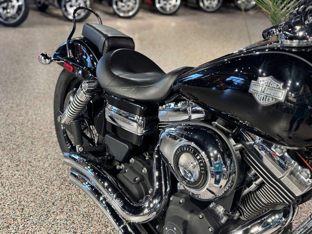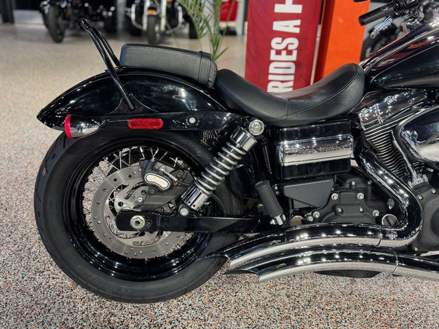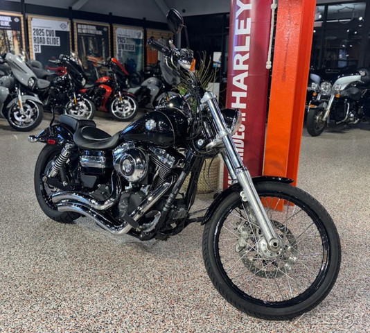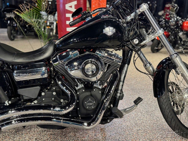 2013 Harley-Davidson® Dyna® Wide Glide®The 2013 Harley-Davidson® Dyna® Wide Glide® FXDWG model is full of classic chopper motorcycle style. The Harley® Dyna® Wide Glide® model features a powerful air-cooled Twin Cam 103™ Harley® engine with 6 speed cruise drive transmission, providing more power for passing, hill-climbing, and riding with passenger and cargo. In front is a long and raked out fork with a 21 inch wheel, giving this model quintessential chopper motorcycle style. And in the back, the Harley® Wide Glide® model features a side mounted license plate for added custom chopper motorcycle style. Want even more factory custom style on your chopper motorcycle? This bike also features an optional classic flame design on the fuel tank. Select the flames on the Harley-Davidson® Wide Glide® chopper motorcycle for a factory custom look at an affordable Harley® price. Learn more about the Harley® Wide Glide® model or other Harley® cruiser motorcycles like the Super Glide Custom Harley-Davidson® motorcycle and the Fat Bob model that has a big motorcycle feel. For a classic bobber motorcycle take a look at the Street Bob model. Check out all of the Dyna® motorcycles and find a bike right for you. Dyna® Wide Glide®The Wide Glide® motorcycle's Vivid Black finish is pure and mean, but if you want to make a hotter statement, you can relive the 1970's with the nostalgic 'flame' design on the fuel tank. This optional custom look applied by The Motor Company is guaranteed to get stares from envious cagers who spot you blazing down the streets.Twin Cam 103™ Engine HeritageThe knowledge of what makes an engine truly move a rider runs deep at The Motor Company, and it was put to good use when we created the Twin Cam 103™; engine. We sweated bullets perfecting every cubic inch, pushing design and technology forward. And we did it all without compromising one bit of Harley-Davidson®'s unique styling. Evolved, yet carrying on the legacy of the Flathead, Knucklehead, Panhead, Shovelhead, Evolution®, Twin Cam 88®; and Twin Cam 96™ engines that came before. The performance and durability are a direct result of the untold miles logged on the V-Twin since 1909, and the proud heritage that comes from a century's worth of commitment to life on two wheels.Artfully Hidden TechnologyHarley-Davidson® leverages the latest in technology without compromising style and function. That means we hide electronics. The whole wiring harness is skillfully routed behind the jewels of the bike—the tank, engine and all the other eye-popping features you want to see. It's just another way The Motor Company goes the extra mile to give its bikes that premium, top-of-the-line fit and finish.Adjustable SuspensionPreload is easily adjusted with a spanner wrench to make your suspension suit you and your riding style. The slammed low rear suspension gives you a more laid-back riding position and style. Low-profile, kicked back for profiling down the boulevard and hugging corners.Forward-Mounted ControlsWith the custom forward-mounted controls on the Wide Glide® model, you can kick back a little and stretch your legs for the ultimate cruise through town or across the state line. It's time to take in the open road the way you were meant to—on a two-wheeled machine that's built to outdo the rest.