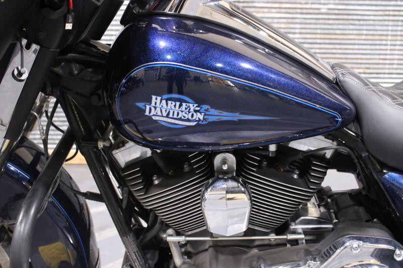 The 2013 Harley-Davidson Touring—a majestic blend of power and style—embodies the essence of freedom on two wheels. This used motorcycle stands out with its eye-catching exterior color, named "Big Blue Pearl with Pinstripe," which gives it a distinctive and stylish appearance. The rich blue hue coupled with elegant pinstripes highlights its graceful lines and sturdy build, making it an instant head-turner on the road. ???