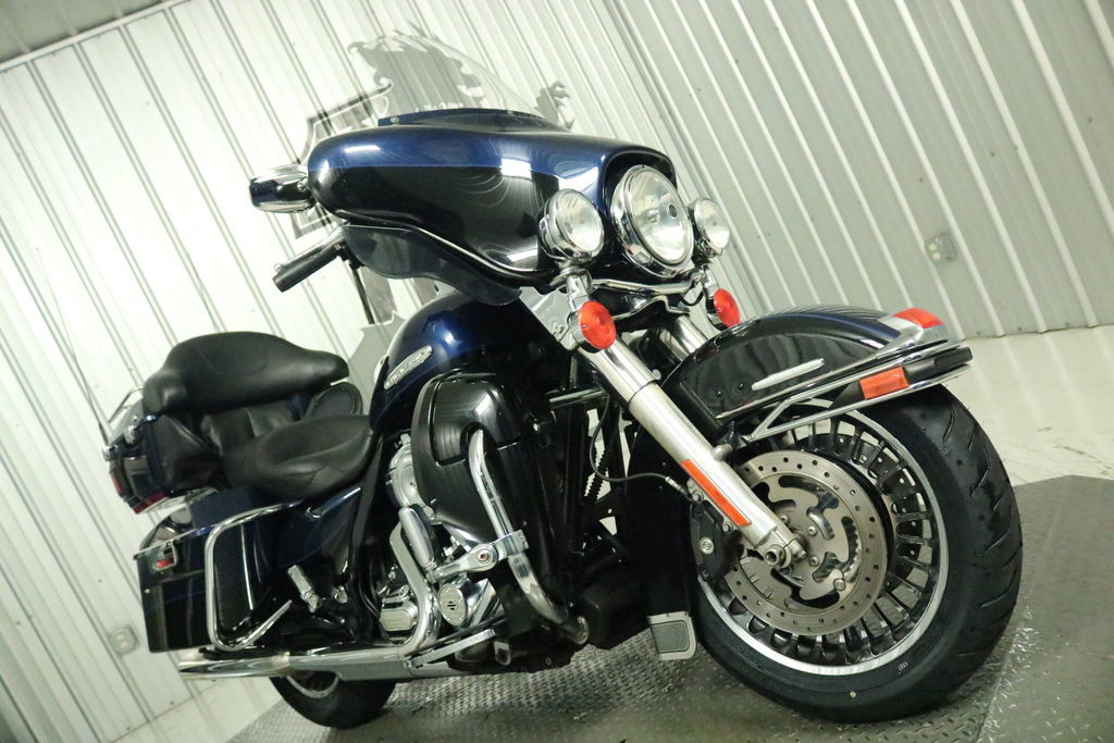 The 2013 Harley-Davidson® Electra Glide® Ultra Limited model FLHTK is a premium featured touring bike full of authentic Harley-Davidson® grand American touring style. For 2013, the Electra Glide® Ultra Limited model comes in a limited, serialized 110th Anniversary Special Edition, featuring exclusive commemorative anniversary styling elements and premium features that make it a top-of-the-line model and a true work of living art, with finely forged finishes that age and transform in a manner unique to each vehicle. Some of the bike's premium features include: air-cooled Twin Cam 103™ engine for powerful performance, ABS brakes, heated hand grips, titanium face gauges, Tour-Pak inserts, a premium Tour-Pak luggage rack, 28-Spoke contrast chrome wheels, and special Ultra Limited identifier medallions. Also found on the Harley® Electra Glide® Ultra touring bike is a 6 gallon fuel tank so you have to stop less for fuel. Harley® has many other motorcycle touring bikes, all to provide you with comfort and style. Be sure to look at the Road Glide Ultra with its frame mounted Harley® fairing for your motorcycle travel as well as all of the other H-D® touring motorcycles.