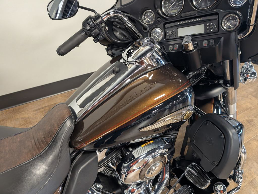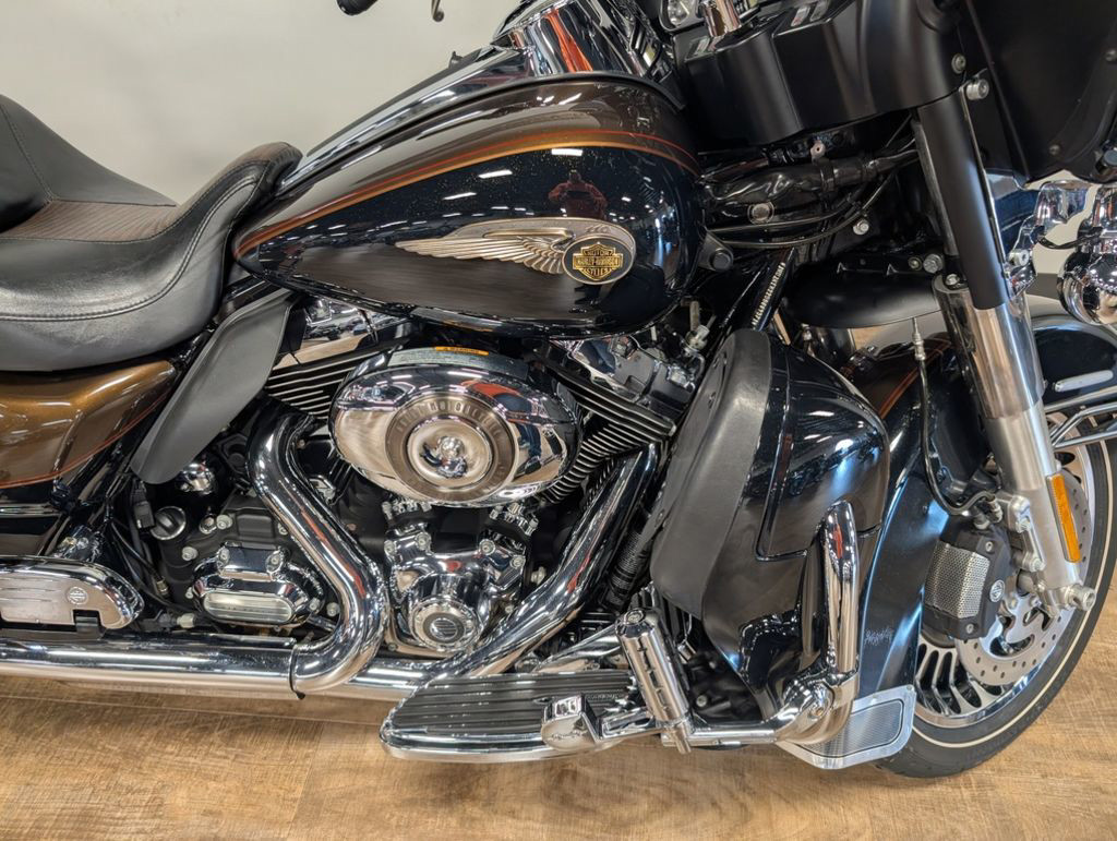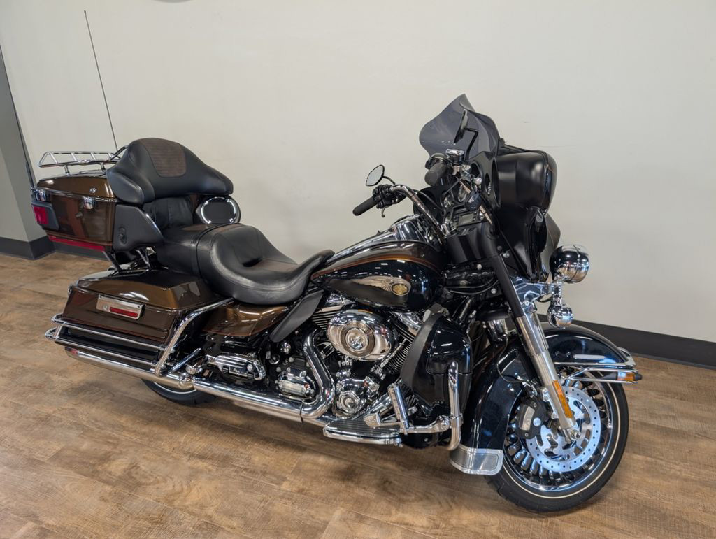 The 2013 Harley-Davidson® Electra Glide® Ultra Limited model FLHTK is a premium featured touring bike full of authentic Harley-Davidson® grand American touring style. For 2013, the Electra Glide® Ultra Limited model comes in a limited, serialized 110th Anniversary Special Edition, featuring exclusive commemorative anniversary styling elements and premium features that make it a top-of-the-line model and a true work of living art, with finely forged finishes that age and transform in a manner unique to each vehicle. Some of the bike's premium features include: air-cooled Twin Cam 103™ engine for powerful performance, ABS brakes, heated hand grips, titanium face gauges, Tour-Pak inserts, a premium Tour-Pak luggage rack, 28-Spoke contrast chrome wheels, and special Ultra Limited identifier medallions. Also found on the Harley® Electra Glide® Ultra touring bike is a 6 gallon fuel tank so you have to stop less for fuel. Harley® has many other motorcycle touring bikes, all to provide you with comfort and style. Be sure to look at the Road Glide Ultra with its frame mounted Harley® fairing for your motorcycle travel as well as all of the other H-D® touring motorcycles.