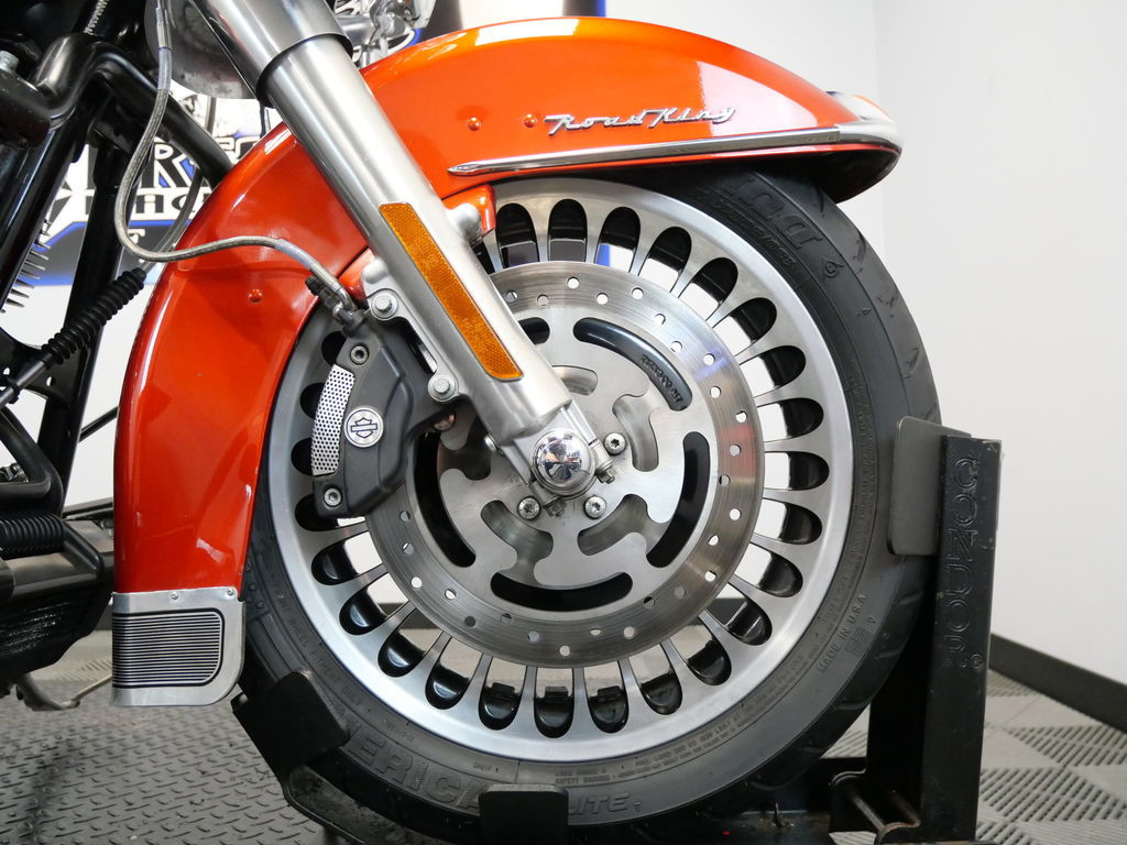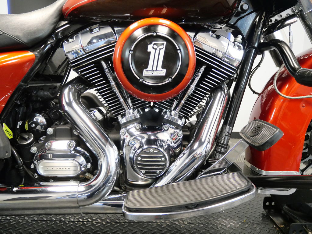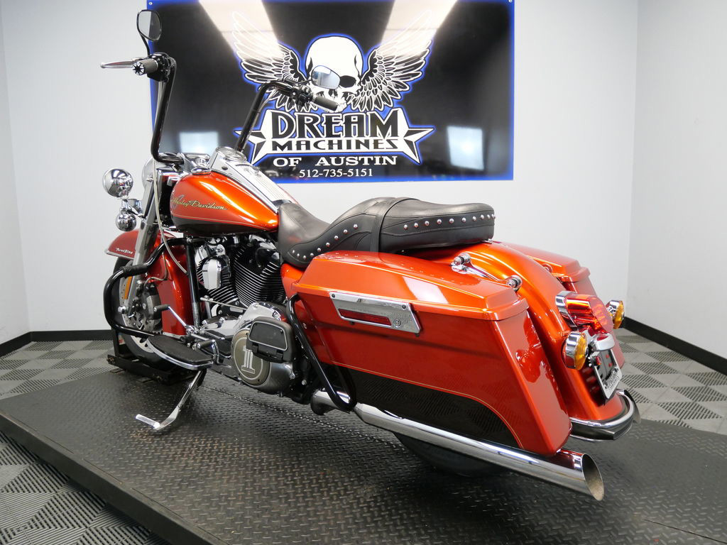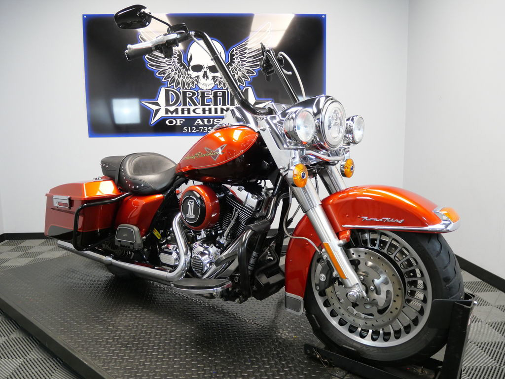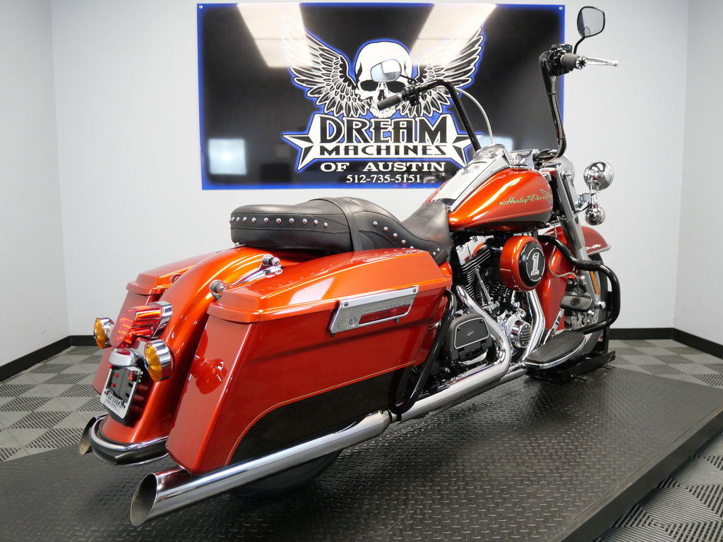 YOU ARE LOOKING AT A 2013 HARLEY DAVIDSON ROAD KING (FLHR) WITH 41,145 MILES ON IT. IT IS CANDY ORANGE AND BEER BOTTLE IN COLOR AND POWERED BY A 1690CC (103") FUEL INJECTED ENGINE AND 6 SPEED TRANSMISSION. THE BIKE COMES WITH CRUISE CONTROL AND 1 KEY. THERE ARE SOME EXTRAS ON THE BIKE WHICH INCLUDE SLASH CUT SLIP-ON MUFFLERS ($399.95), STAGE 1 AIR INTAKE ($139.95), BLACK ENGINE GUARD ($214.95), SADDLEBAG GUARD RAILS ($289.95), AIR CLEANER BADGE ($43.95), TIMER COVER ($28.95), APE HANGER BARS ($299.95), GRIPS ($99.95), DERBY COVER ($58.95), LED HEADLIGHT ($399.95), AND COMBINATION ANALOG SPEEDOMETER/TACHOMETER ($399.95). THERE ARE NO SCRATCHES, DENTS, OR DINGS THAT I CAN FIND WITH THE EXCEPTION OF TOUCH UPS ON THE FRONT AND REAR FENDER. THE CHROME AND ALUMINUM ARE IN GOOD CONDITION. THE TIRES HAVE GOOD TREAD LEFT ON THEM.