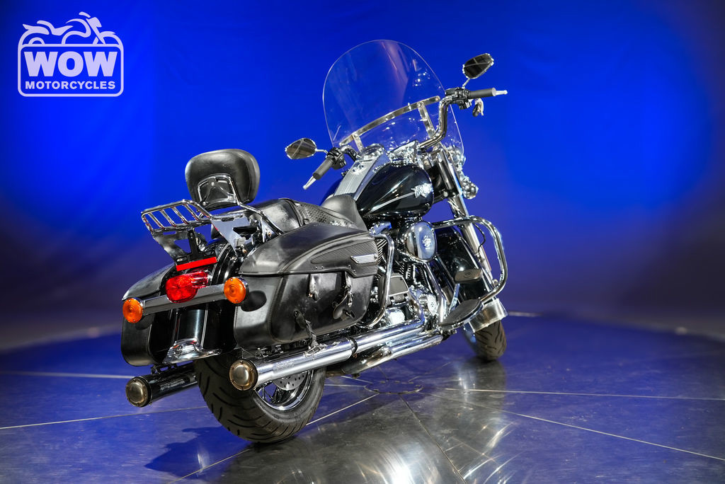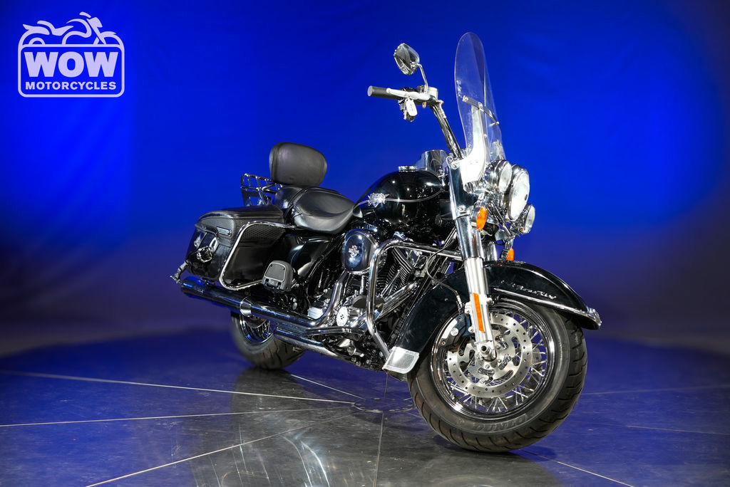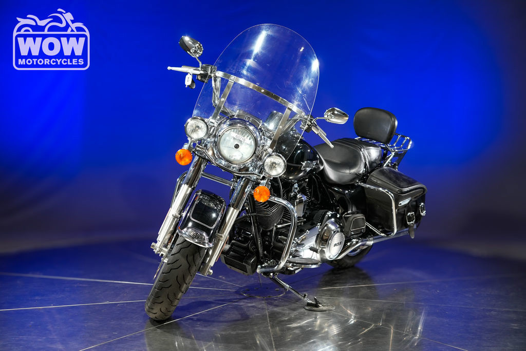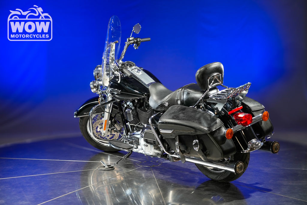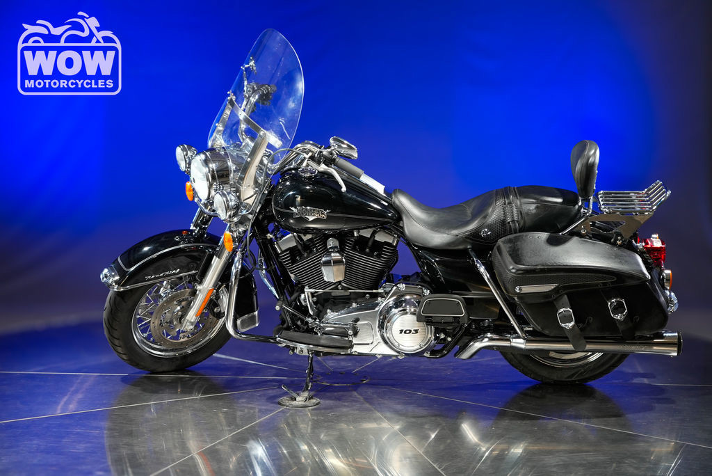 The 2013 Harley-Davidson FLHRC Road King Classic delivers timeless touring style paired with the unmistakable soul of a true American V-twin. Built for riders who appreciate heritage, comfort, and long-haul capability, this iconic cruiser blends nostalgic design with modern performance. Powered by a robust 103 cubic inch (1,690cc) Twin Cam engine, the Road King Classic produces strong, smooth torque ideal for highway cruising and relaxed backroad rides. Its electronic fuel injection ensures reliable starts and consistent performance, while the six-speed Cruise Drive transmission keeps RPMs low for a more comfortable ride over long distances. Signature features like leather-wrapped hard saddlebags, a detachable windshield, and wide whitewall tires give the FLHRC its distinctive vintage look. Full-length floorboards, a plush touring seat, and ergonomically positioned handlebars provide all-day riding comfort for both rider and passenger. The chassis is designed for stability and control, with a low center of gravity and responsive handling that inspires confidence whether navigating city streets or open highways. Classic styling cues—like chrome accents, a large headlamp nacelle, and nostalgic badging—complete the look of this legendary touring machine. The 2013 Harley-Davidson Road King Classic is the perfect choice for riders seeking a blend of heritage styling, modern touring capability, and the freedom of the open road.