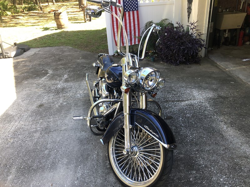 18” Carlini gangster apes custom Lepera seat and fender bib 21” front wheel custom fat daddy 50 spoked wheels white wall Bassani true duel fishtailed exhaust all services done by Harley dealer have all service documents and work order paperwork show room condition flawless pictures don’t do it justice
