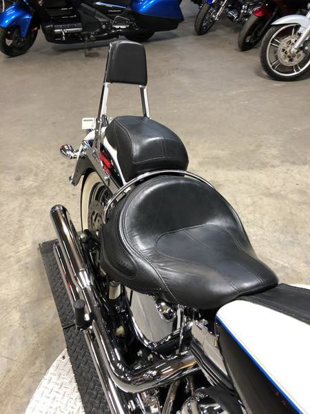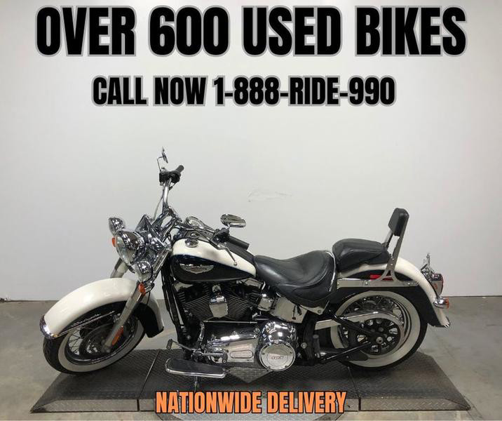 USED HARLEY DAVIDSON SOFTAIL DELUXE FOR SALE WITH ONLY 15,873 MILES! CLEAN, CLEAN, CLEAN! TAKE A CLOSE LOOK AT THIS ONE! METALLIC BLACK AND PEARL WHITE TWO-TONE PAINT IS FLAWLESS AND SHINES LIKE NEW! CHROME LACED WHEELS WITH FAT ALL TIRES, BACKREST, AND THE RINEHART EXHAUST SOUNDS GREAT! JUST SERVICED AT THE DEALERSHIP, INSPECTED, ALL FLUIDS CHANGED, RUNS STRONG, EVERYTHING WORKS, NEEDS NOTHING! BUY THIS LOW MILEAGE, CLEAN, SHARP SOFTAIL WITH CONFIDENCE!