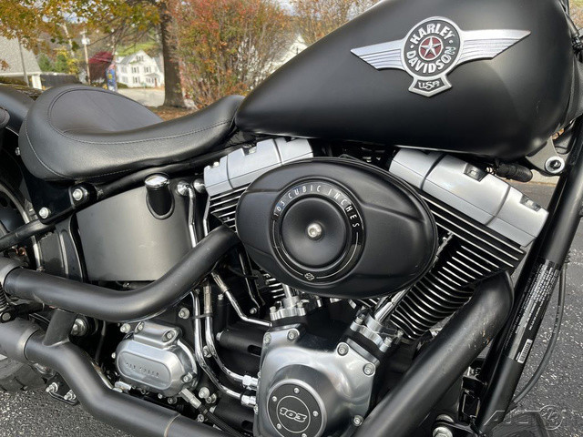 2013 Harley-Davidson® Softail® Fat Boy® LOThe 2013 Harley-Davidson® Fat Boy® Lo FLSTFB model has all the features you expect on custom Harley® motorcycles. Hearkening to the 'hardtail' choppers of the '60s and '70s, the Fat Boy® Lo model is one of the custom Harley® motorcycles that keeps that heritage alive more than forty years later. And this special edition shows a darker side of the original 'fat custom' bike—laid-back and blacked-out with an unmistakable profile on the road. For 2013, the H-D® FLSTFB Softail® Fat Boy® Lo model comes in a limited, serialized 110th Anniversary Special Edition, featuring exclusive commemorative anniversary styling elements and premium features that make it a top-of-the-line model and a true work of living art, with finely forged finishes that age and transform in a manner unique to each vehicle. The Harley® Fat Boy® Lo model features a powerful air-cooled Twin Cam 103™ Harley® engine with 6 speed cruise drive transmission, providing more performance power for passing, hill-climbing, and riding with a passenger and luggage. Take a minute and learn about all the features of the Fat Boy® Lo model and learn more about other custom Harley® motorcycles. For more choppers, check out the Fat Boy® model or another one of the Harley-Davidson® cruiser motorcycles. The Heritage Softail® Classic model gives you a classic motorcycle experience, learn more about this bike. Take a look at all of the Harley® motorcycles and find the bike for you.Fat Custom StyleRecalling the "hardtail" choppers of the '60s and '70s, the Fat Boy® Lo model keeps that heritage alive more than forty years later. It shows a darker side of the original "fat custom" bike—laid-back and blacked-out with an unmistakable profile on the road. But the nostalgic style isn't just about the confident stance, paint and old-school detail. It's how you look riding it. It's how it feels. It's the classic, relaxed riding position that speaks volumes. You're not just cruising. You're in charge—kicked back on a throne of machined metal surveying your domain.Twin Cam 103™ Engine HeritageThe knowledge of what makes an engine truly move a rider runs deep at The Motor Company, and it was put to good use when we created the Twin Cam 103™; engine. We sweated bullets perfecting every cubic inch, pushing design and technology forward. And we did it all without compromising one bit of Harley-Davidson®'s unique styling. Evolved, yet carrying on the legacy of the Flathead, Knucklehead, Panhead, Shovelhead, Evolution®, Twin Cam 88®; and Twin Cam 96™ engines that came before. The performance and durability are a direct result of the untold miles logged on the V-Twin since 1909, and the proud heritage that comes from a century's worth of commitment to life on two wheels.Artfully Hidden TechnologyHarley-Davidson® leverages the latest in technology without compromising style and function. That means we hide electronics. The whole wiring harness is skillfully routed behind the jewels of the bike—the tank, engine and all the other eye-popping features you want to see. It's just another way The Motor Company goes the extra mile to give its bikes that premium, top-of-the-line fit and finish.Low SuspensionTo give the Fat Boy® Lo model its distinctive road-hugging stance, we've dropped the front and rear suspension 1.15 inches. That makes it the lowest seat height of any stock Harley-Davidson® model at a down and dirty 24.25 inches. Perfect for smaller riders or those who just like to feel down in the bike.