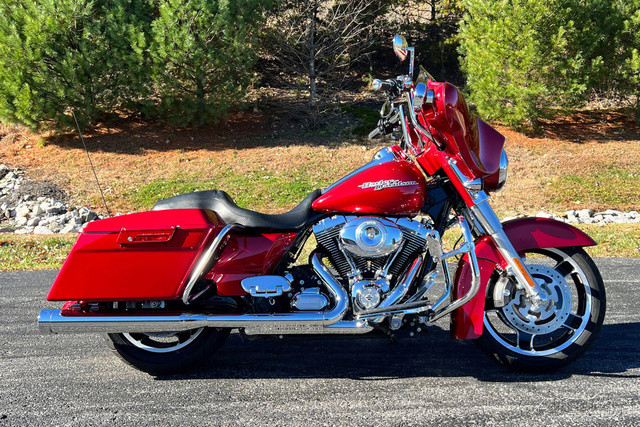 2013 Harley-Davidson® Street Glide®The 2013 Harley-Davidson® Street Glide® model FLHX is equipped with an iconic bat wing fairing this custom hot-rod bagger an amazing Harley® style that needs to be seen and ridden. The Harley® Street Glide® FLHX model has a 2-1-2 exhaust. Check out all of the H-D® Street Glide® FLHX model’s specs and features and see why this bike is meant for motorcycle touring. Take a look at more of the Harley-Davidson® touring motorcycles including the motorcycle luggage storage capacity of the Electra Glide® Classic model or the Road Glide® Ultra model ideal for motorcycle travel.Classic Fuel TankPart of the unmistakable style of the Harley-Davidson® Street Glide® motorcycle is plenty of room for showing off your paint. This classically styled, bold six-gallon fuel tank doesn't just give you a bigger canvas for premium or custom paint; it holds six gallons of go so you can eat up a lot more road between pit stops. We know fuel economy is important—but so is style. Sharp, eye-catching colors and precision-crafted Harley-Davidson® tank medallions complete the unique look of this tough bagger.Twin Cam 103™ Engine HeritageThe knowledge of what makes an engine truly move a rider runs deep at The Motor Company, and it was put to good use when we created the Twin Cam 103™ engine. We painstakingly perfected every cubic inch, pushing design and technology forward—all without compromising one bit of Harley-Davidson®'s unique styling. Evolved, yet carrying on the legacy of the Flathead, Knucklehead, Panhead, Shovelhead, Evolution®, Twin Cam 88® and Twin Cam 96™ engines that came before. The performance and durability are a direct result of the untold miles logged on the V-Twin since 1909, and the proud heritage that comes from a century's worth of commitment to life on two wheels.Harman/Kardon® Advanced Audio SystemNaturally, the king of the road gets some royal extras. The premium two-speaker, 20-watt per channel Harman/Kardon® audio system boasts great sound for booming down the boulevard and highway, and, yeah, it might as well go to 11. It's loud, proud and comes with AM/FM receiver and accommodates a CD or MP3 player. Riding free just wouldn't be the same without the right soundtrack.Dunlop® Multi-Tread™ TiresThe 180mm back tire is engineered to do more than fill out the rear fender and put a bigger patch of rubber on the road. Dunlop® Multi-Tread™ technology uses harder compounds at the center and softer on the sides for a tire that still knows how to knuckle-down on corners. Perfect for making this bike agile on every curvy stretch of road. And the way it feels going through an abrupt off-camber turn will put a grin on your face that'll last to the next state line.Two-Up SeatingModern styling and comfort that doesn't sacrifice an ounce of nostalgic style: This ultimate Touring saddle features a sculpted seat with a deeper contoured bucket and narrower neck, to relieve pressure on your thighs, while providing more back support and comfort for a wide variety of rider sizes. And the lower seat height—26.1 inches to be exact—puts your feet closer to the road to enhance your confidence. Additionally, the leather trim and premium stitching accentuate the advanced ergonomics while giving the seat that sharp detail you only find on a Harley-Davidson® motorcycle. It's science in service of comfort, and your way to beat fatigue over the long haul.