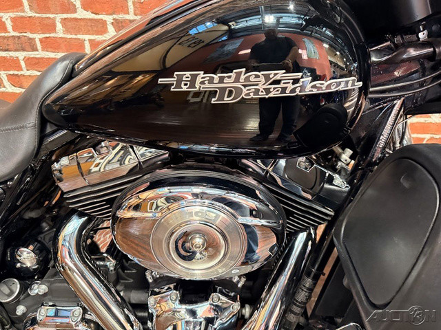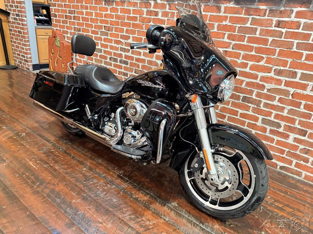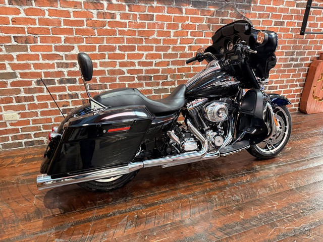 2013 Harley-Davidson® Street Glide®The 2013 Harley-Davidson® Street Glide® model FLHX is equipped with an iconic bat wing fairing this custom hot-rod bagger an amazing Harley® style that needs to be seen and ridden. The Harley® Street Glide® FLHX model has a 2-1-2 exhaust. Check out all of the H-D® Street Glide® FLHX model’s specs and features and see why this bike is meant for motorcycle touring. Take a look at more of the Harley-Davidson® touring motorcycles including the motorcycle luggage storage capacity of the Electra Glide® Classic model or the Road Glide® Ultra model ideal for motorcycle travel.Classic Fuel TankPart of the unmistakable style of the Harley-Davidson® Street Glide® motorcycle is plenty of room for showing off your paint. This classically styled, bold six-gallon fuel tank doesn't just give you a bigger canvas for premium or custom paint; it holds six gallons of go so you can eat up a lot more road between pit stops. We know fuel economy is important—but so is style. Sharp, eye-catching colors and precision-crafted Harley-Davidson® tank medallions complete the unique look of this tough bagger.Twin Cam 103™ Engine HeritageThe knowledge of what makes an engine truly move a rider runs deep at The Motor Company, and it was put to good use when we created the Twin Cam 103™ engine. We painstakingly perfected every cubic inch, pushing design and technology forward—all without compromising one bit of Harley-Davidson®'s unique styling. Evolved, yet carrying on the legacy of the Flathead, Knucklehead, Panhead, Shovelhead, Evolution®, Twin Cam 88® and Twin Cam 96™ engines that came before. The performance and durability are a direct result of the untold miles logged on the V-Twin since 1909, and the proud heritage that comes from a century's worth of commitment to life on two wheels.Harman/Kardon® Advanced Audio SystemNaturally, the king of the road gets some royal extras. The premium two-speaker, 20-watt per channel Harman/Kardon® audio system boasts great sound for booming down the boulevard and highway, and, yeah, it might as well go to 11. It's loud, proud and comes with AM/FM receiver and accommodates a CD or MP3 player. Riding free just wouldn't be the same without the right soundtrack.Dunlop® Multi-Tread™ TiresThe 180mm back tire is engineered to do more than fill out the rear fender and put a bigger patch of rubber on the road. Dunlop® Multi-Tread™ technology uses harder compounds at the center and softer on the sides for a tire that still knows how to knuckle-down on corners. Perfect for making this bike agile on every curvy stretch of road. And the way it feels going through an abrupt off-camber turn will put a grin on your face that'll last to the next state line.Two-Up SeatingModern styling and comfort that doesn't sacrifice an ounce of nostalgic style: This ultimate Touring saddle features a sculpted seat with a deeper contoured bucket and narrower neck, to relieve pressure on your thighs, while providing more back support and comfort for a wide variety of rider sizes. And the lower seat height—26.1 inches to be exact—puts your feet closer to the road to enhance your confidence. Additionally, the leather trim and premium stitching accentuate the advanced ergonomics while giving the seat that sharp detail you only find on a Harley-Davidson® motorcycle. It's science in service of comfort, and your way to beat fatigue over the long haul.