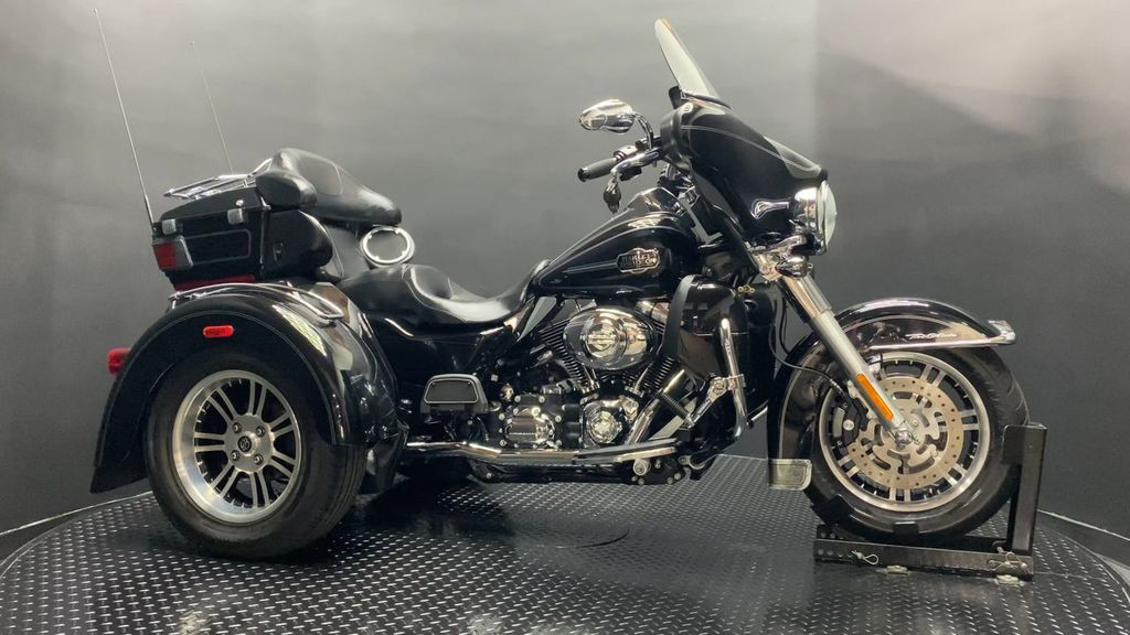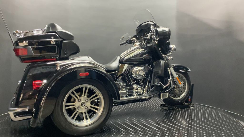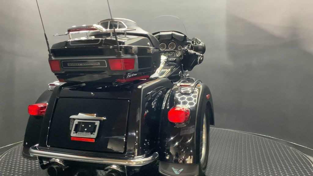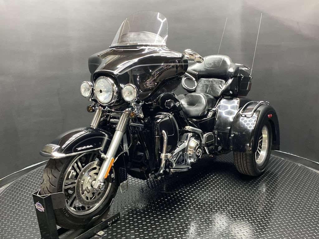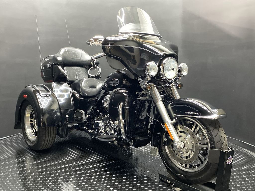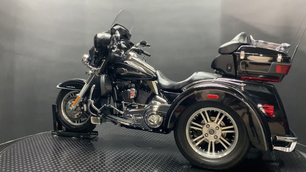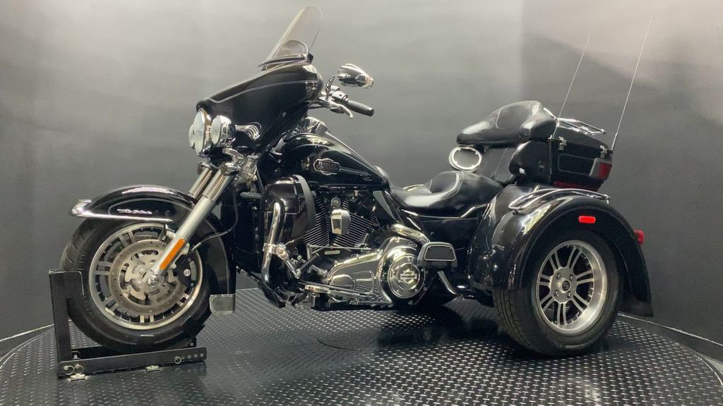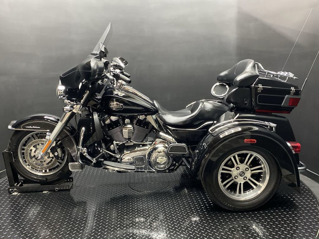 YOU ARE LOOKING AT A 2013 HARLEY DAVIDSON TRI-GLIDE ULTRA CLASSIC (FLHTCUTG) WITH 9,665 MILES ON IT. IT IS VIVID BLACK IN COLOR AND POWERED BY A 1690CC (103") FUEL INJECTED ENGINE AND 6 SPEED TRANSMISSION WITH STARTER AIDED REVERSE. THE BIKE COMES WITH CRUISE CONTROL, 2 KEYS, 1 FOB, AND FACTORY SECURITY SYSTEM. THERE ARE SOME EXTRAS ON THE BIKE WHICH INCLUDE RINEHART SLIP-ON MUFFLERS ($584.95), DUAL HEADERS ($449.95), MUD FLAPS ($59.95), 3 POCKET WINDSHIELD POUCH ($99.95), FRONT AXLE BOLT COVERS ($39.95), HIGHWAY PEGS ($179.95), REAR FENDER RAILS ($159.95), GRIPS ($79.95), MIRRORS ($119.95), WINDSHIELD MOLDING ($44.95), LUGGAGE RACK ($124.95), TRUNK GUARD ($249.95), AND DIAMOND ICE AIR CLEANER BADGE ($59.95), TIMER COVER ($54.95), FUEL DOOR ($59.95), AND DERBY COVER ($94.95). THERE ARE NO DENTS OR DINGS THAT I CAN FIND WITH THE EXCEPTION OF TOUCHUPS ON THE REAR FENDER, TOUR TRUNK, AND HEAT CRACKS ON THE PROTECTIVE CLEAR COAT ON THE REAR FENDERS. THE CHROME AND ALUMINUM ARE IN GOOD CONDITION. THE TIRES HAVE GOOD TREAD LEFT ON THEM.