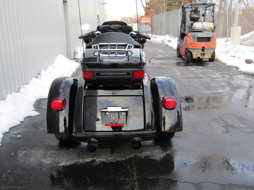 The 2013 Harley-Davidson® Trike motorcycles provide you long-haul comfort and confidence. Harley® Trike motorcycles have an iconic Harley-Davidson® bat wing fairing. The Tri Glide® Ultra Classic® model is full of all the features that you want in your Trike motorcycle. It has a Twin Cam 103 engine and 6 speed cruise drive transmission. It is designed and built as a single unit. It is not a bolt-on Trike kit so it provides an integrated and seamless look. For 2013, the Tri Glide® Ultra Classic® Trike comes in a limited, serialized 110th Anniversary Special Edition. Take time to see all the performance features on the Tri Glide® Ultra Classic® that give you a top-notch riding experience.