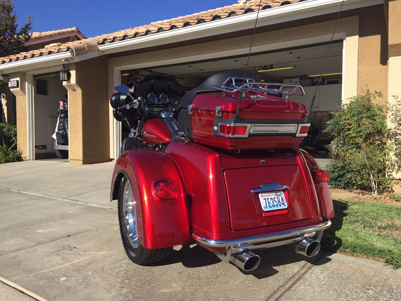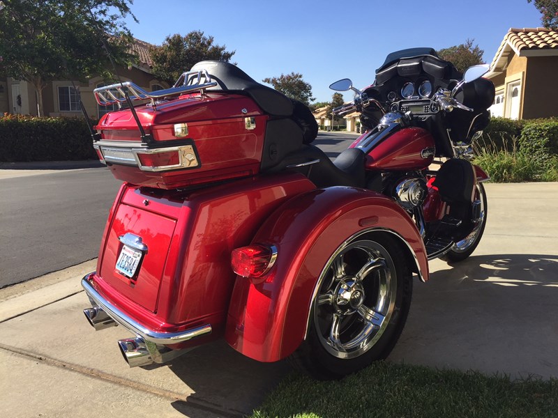 Gorgeous red metallic paint, Half skull chrome thru out, chrome forks, custom wheels front & rear, good tires & brakes, net storage in upper & lower trunks, short tinted wind screen, includes utility trailer for towing
