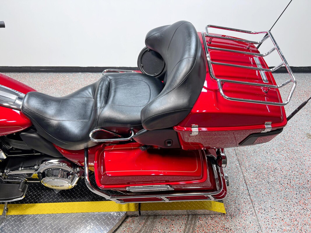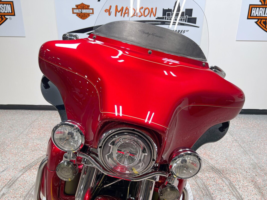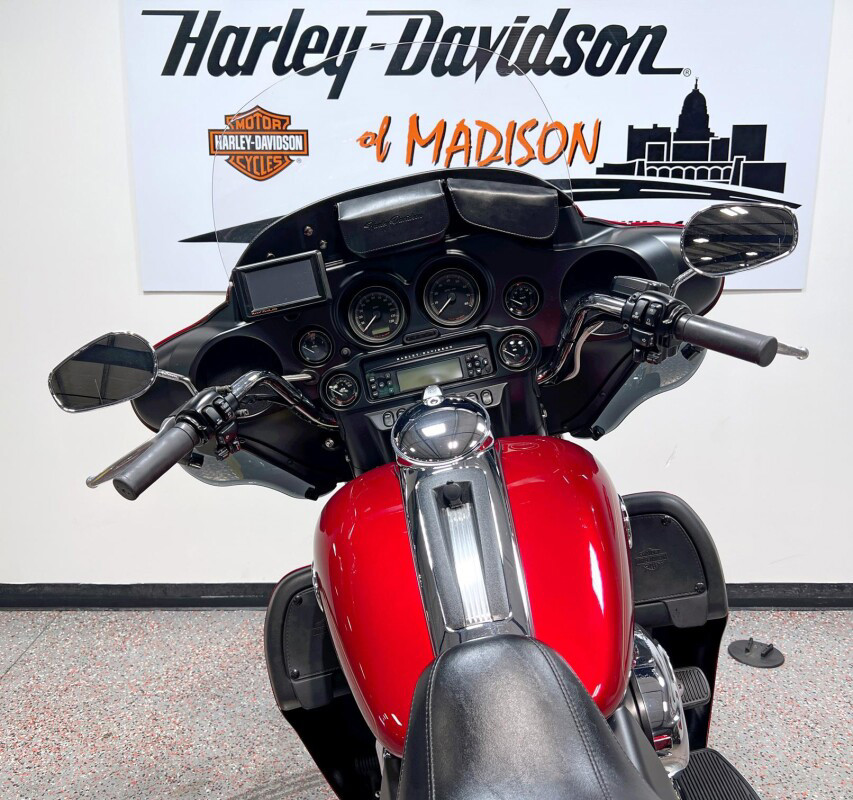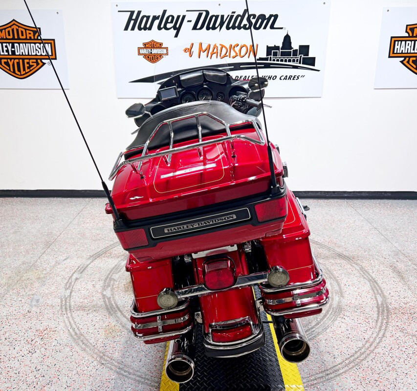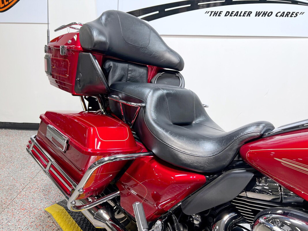 The Ultra Classic Electra Glide sets the standard for long-haul touring comfort and convenience. Though many imitators sought to duplicate it, the Ultra Classic Electra Glide stands tall as a benchmark for touring enthusiasts. A fourspeaker, 80-watt Harmon/Kardon Advanced Audio System, one-piece, two-up Electra Glide Classic comfort stitch seat with passenger backrest, adjustable fairing-mounted air deflectors, vented removable fairing lowers with integral glove boxes, spacious Tour-Pak carrier and injection-molded hard saddlebags, and standard electronic cruise control, all combine comfort and function as styling touches that make it a Harley-Davidson.