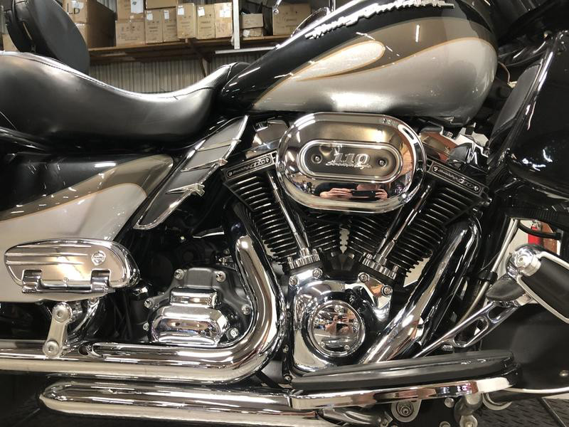USED HARLEY DAVIDSON 110 SCREAMING EAGLE CVO. CHROME WHEELS, CHROME FRONT END, CHROME LEVERS, CHROME SWITCH HOUSING, HIGHWAY PEGS, HEATED GRIPS, HEATED SEAT, SPAKERS IN LOWER FAIRING, DUAL BACKREST, LUGGAGE PACKAGE, AND THE VANCE & HINES EXHAUST SOUNDS GREAT! THIS ONE HAS IT ALL! NICE CLEAN BIKE! JUST SERVICED AT THE DEALERSHIP, INSPECTED, ALL FLUIDS CHANGED, RUNS STRONG, EVERYTHING WORKS, NEEDS NOTHING! GREAT BIKE FOR THE MONEY!