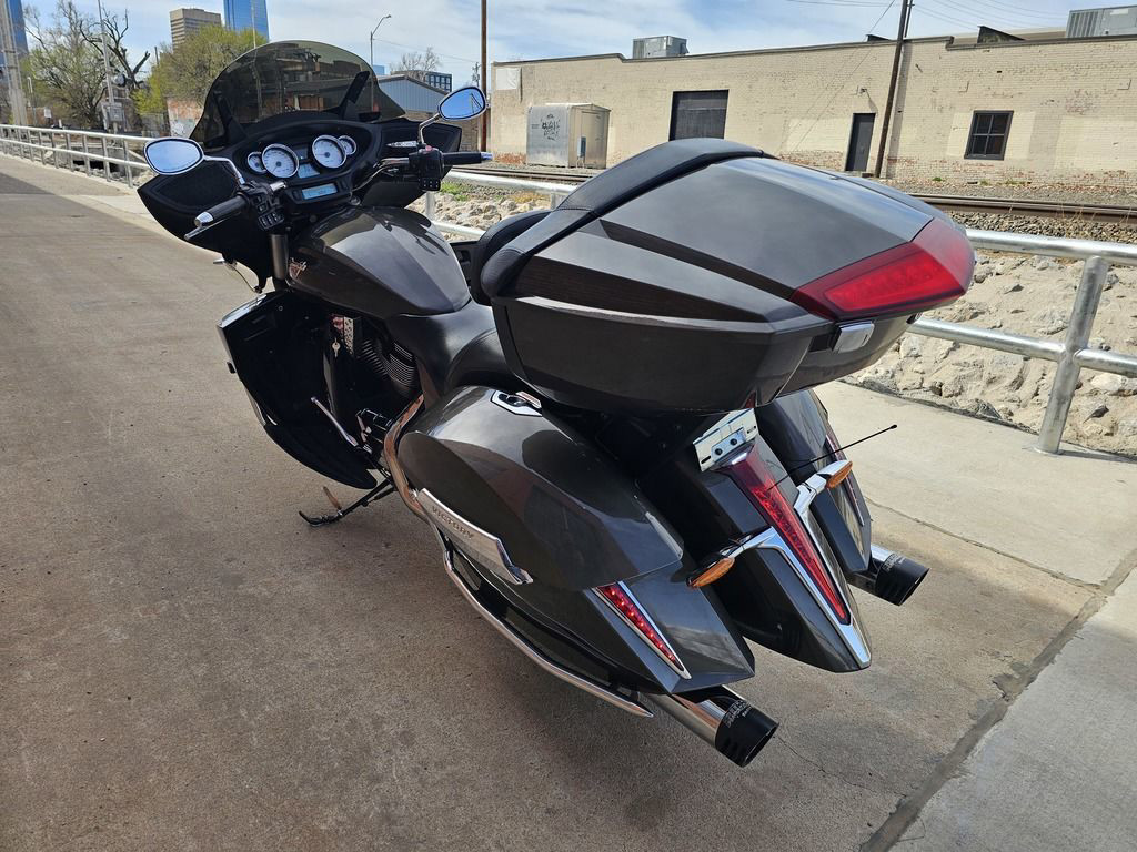 TOURING MOTORCYCLE RIDERS ARE ROLLING UP THE MILES ON THE INNOVATIVE CROSS COUNTRY TOUR FROM VICTORY MOTORCYCLES. IT HAS THE MOST STORAGE SPACE OF ANY MOTORCYCLE IN THE WORLD, UNMATCHED COMFORT, SUPERB PERFORMANCE AND DISTINCTIVE STYLE. PACK EVERYTHING YOU NEED, TAKE TO THE ROAD AND RELAX FOR WEEKS.