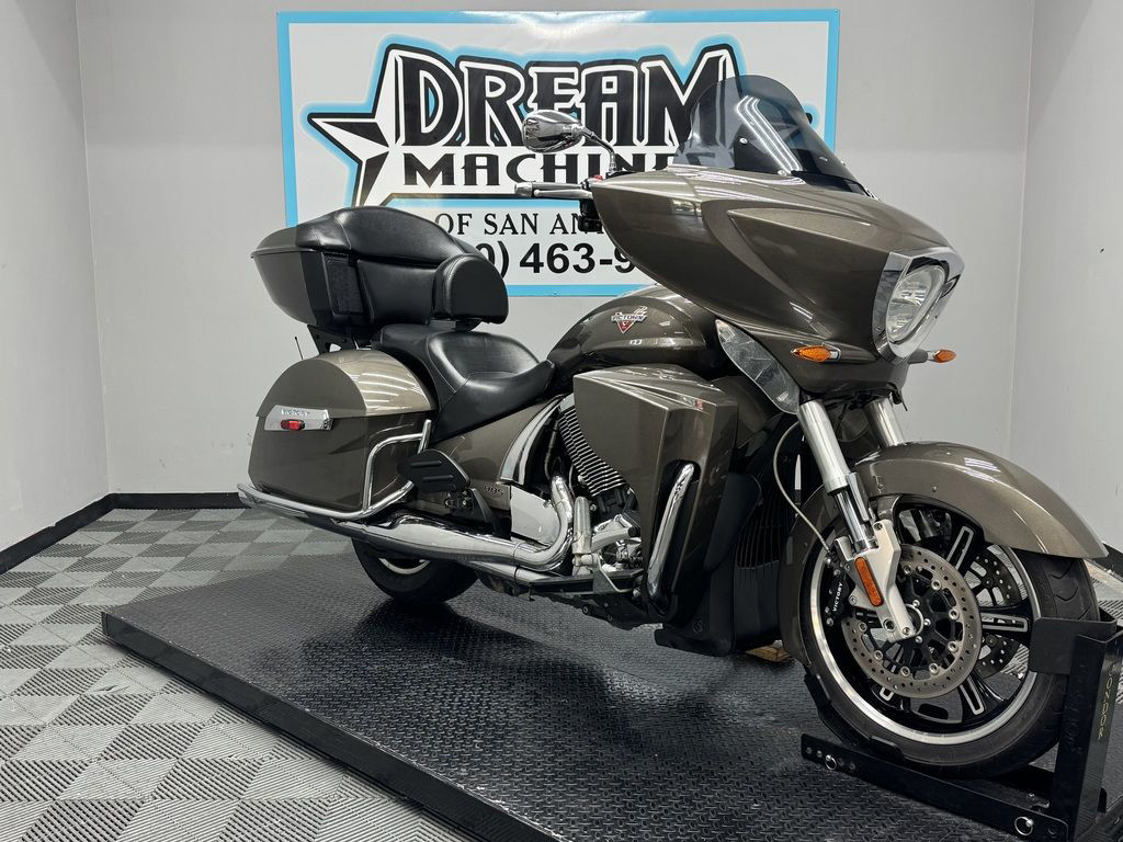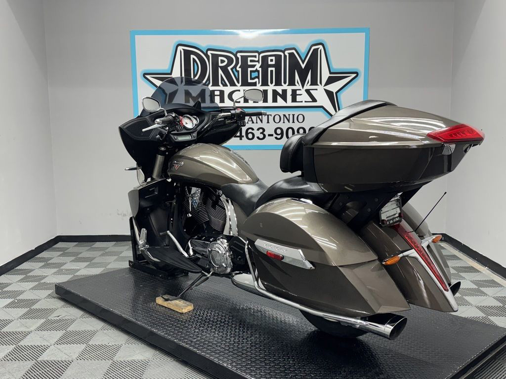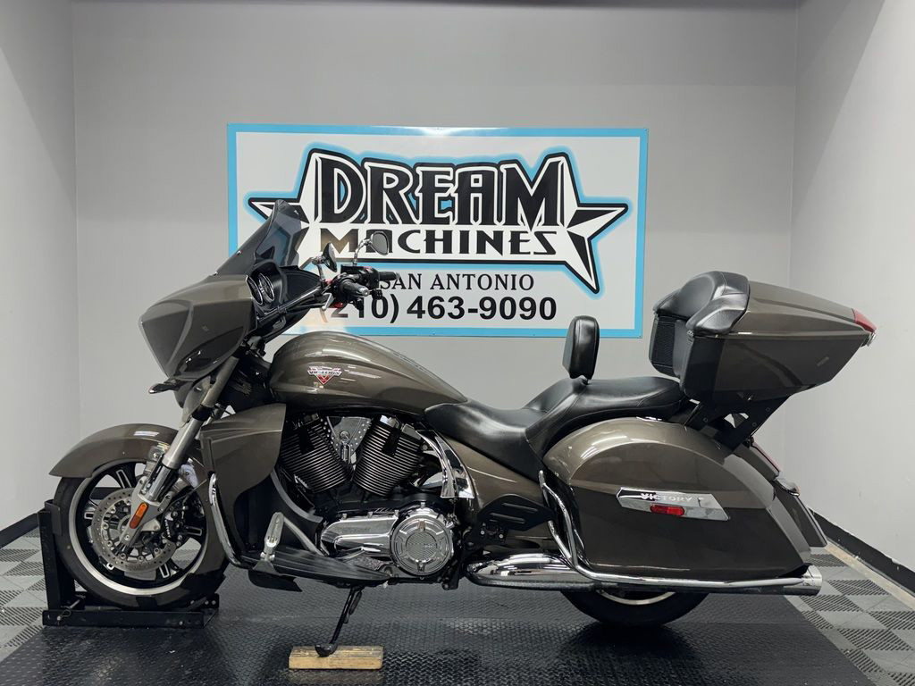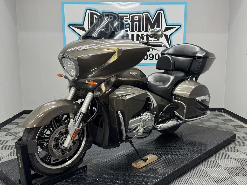 *BOOK VALUE IS $7,741 SHIPPING, LEASING, FINANCING AND EXTENDED WARRANTY MAY BE AVAILABLE! YOU ARE LOOKING AT A 2013 VICTORY CROSS COUNTRY TOUR WITH 35,556 MILES ON IT. IT IS BRONZE MIST IN COLOR AND POWERED BY A 1731CC (106") FUEL INJECTED ENGINE AND 6 SPEED TRANSMISSION. THE BIKE COMES WITH ABS BRAKES, CRUISE CONTROL, HEATED GRIPS, AND 1 KEY.THERE ARE SOME EXTRAS ON THE BIKE WHICH INCLUDE VICTORY PERFORMANCE SLIP-ON MUFFLERS ($424.95), HIGHWAY PEGS ($179.95), RIDERS BACKREST ($199.95), SADDLEBAG GUARD RAILS ($269.95), AND LRS WINDSHIELD ($179.95).THERE ARE NO SCRATCHES, DENTS, OR DINGS THAT I CAN FIND WITH THE EXCEPTION OF SCUFFS ON THE FRONT FENDER, WINDSHIELD AND CHIPS ON THE LEFT SADDLEBAG. THE CHROME AND ALUMINUM HAVE OXIDATION THROUGHOUT AND HARD WATER STAINS ON THE WINDSHIELD AND SEAT. THE TIRES HAVE GOOD TREAD LEFT ON THEM.