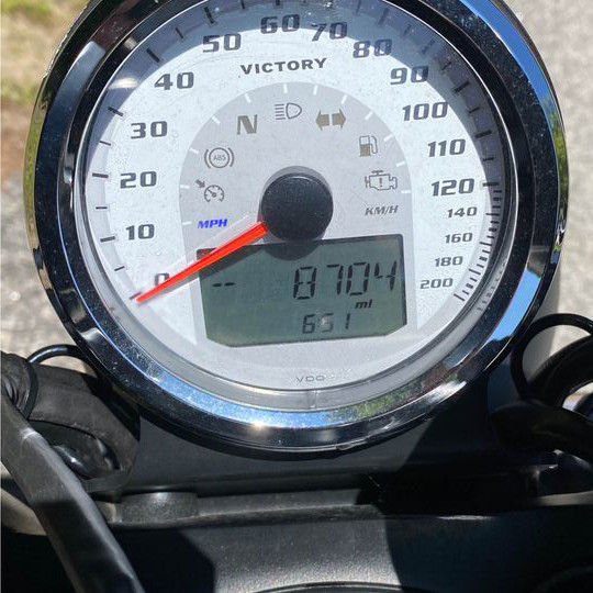 It has been custom painted Hot Rod Black, has Mustang seats, converted to a 2-up, 4" extensions, straight exhaust (it is loud), teardrop mirrors, aftermarket grips, LED turn signals, and HID headlights. Not to mention it will come with some factory parts (exhaust, seat, mirrors, etc) and bags (they are leather-wrapped soft victory bags, one is torn though but they could be reupholstered).