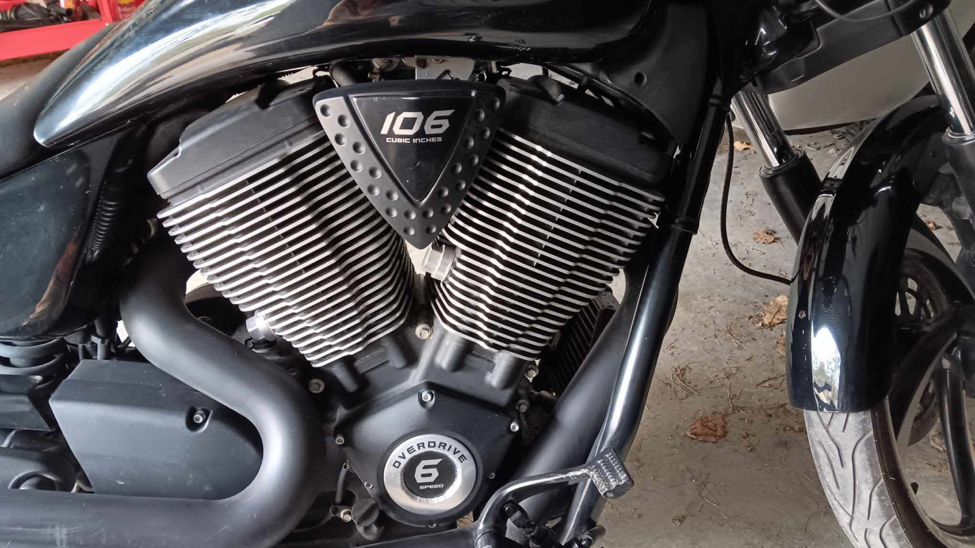 The blacked-out trim and minimalist design give the Vegas 8-Ball a modern and aggressive look that is sure to turn heads wherever you go. The 106 cubic inch V-twin engine provides plenty of power and torque for a thrilling ride, while the comfortable seating position and smooth suspension make long rides a breeze.
