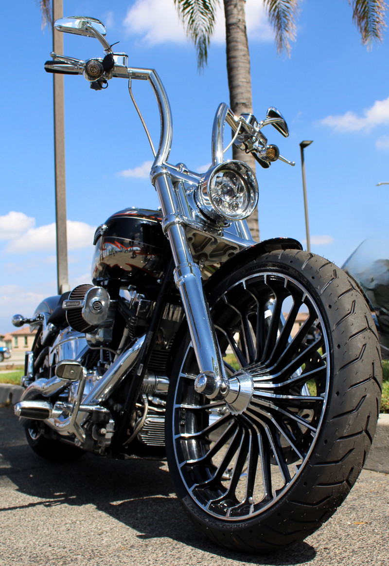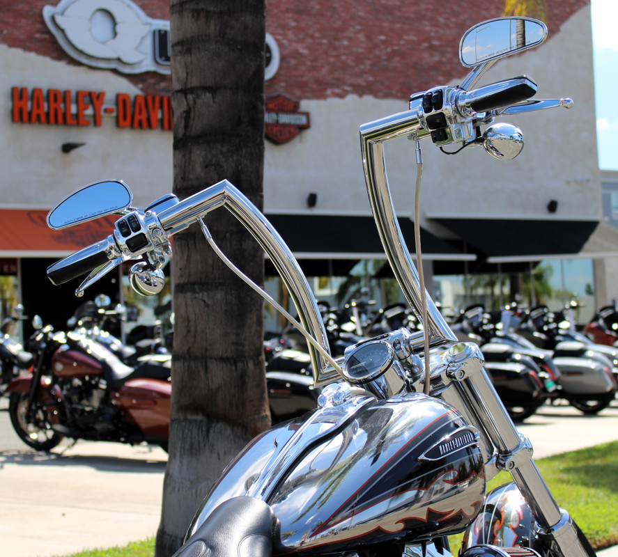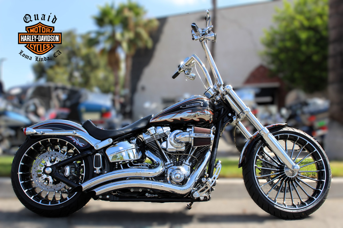 For sale at Quaid Harley-Davidson in Loma Linda, CA: a stunning 2014 Harley-Davidson CVO Breakout FXSBSE with tasteful upgrades. This bike is equipped with a Vance & Hines exhaust and chrome ape hangers that perfectly accentuate the factory chrome and paint. It delivers both premium style and the aggressive rumble you expect from a Harley.