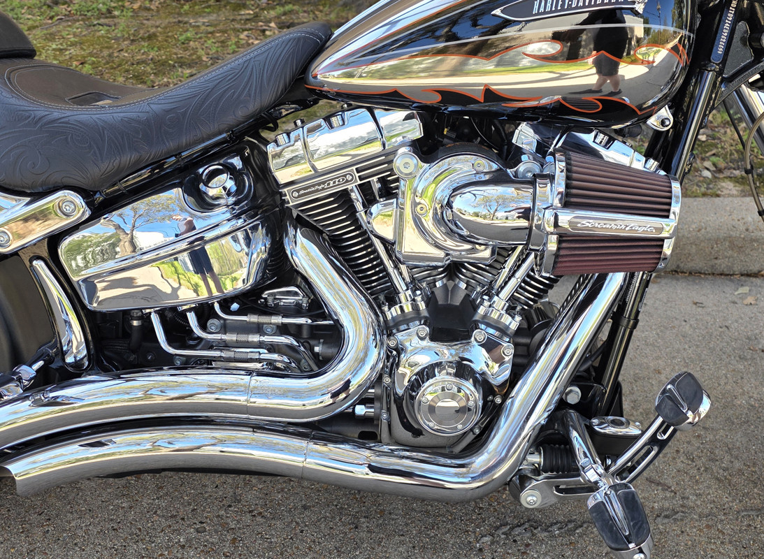 • Screamin’ Eagle Twin Cam 110B™ Granite powder-coated powertrain with 110 Screamin’ Eagle® identifiers on cylinder heads