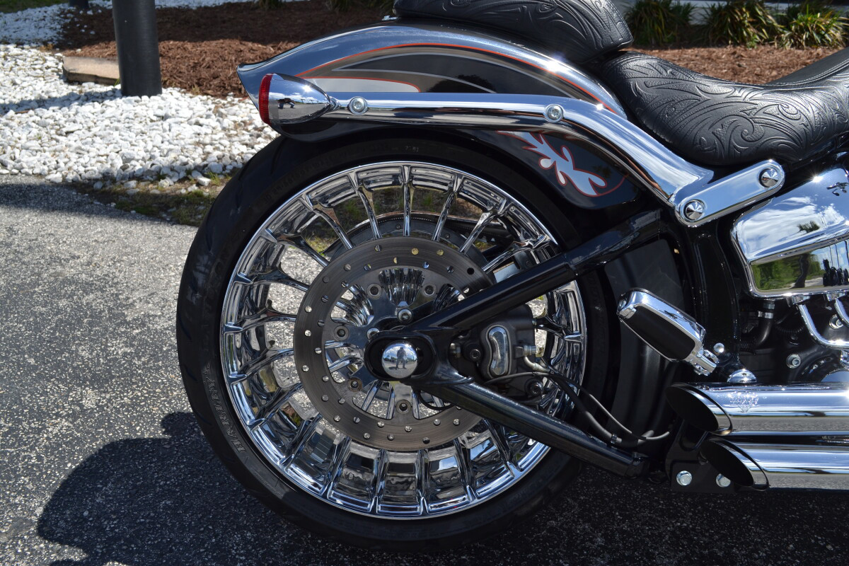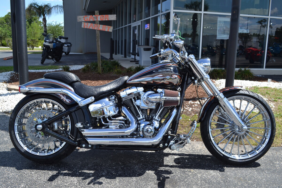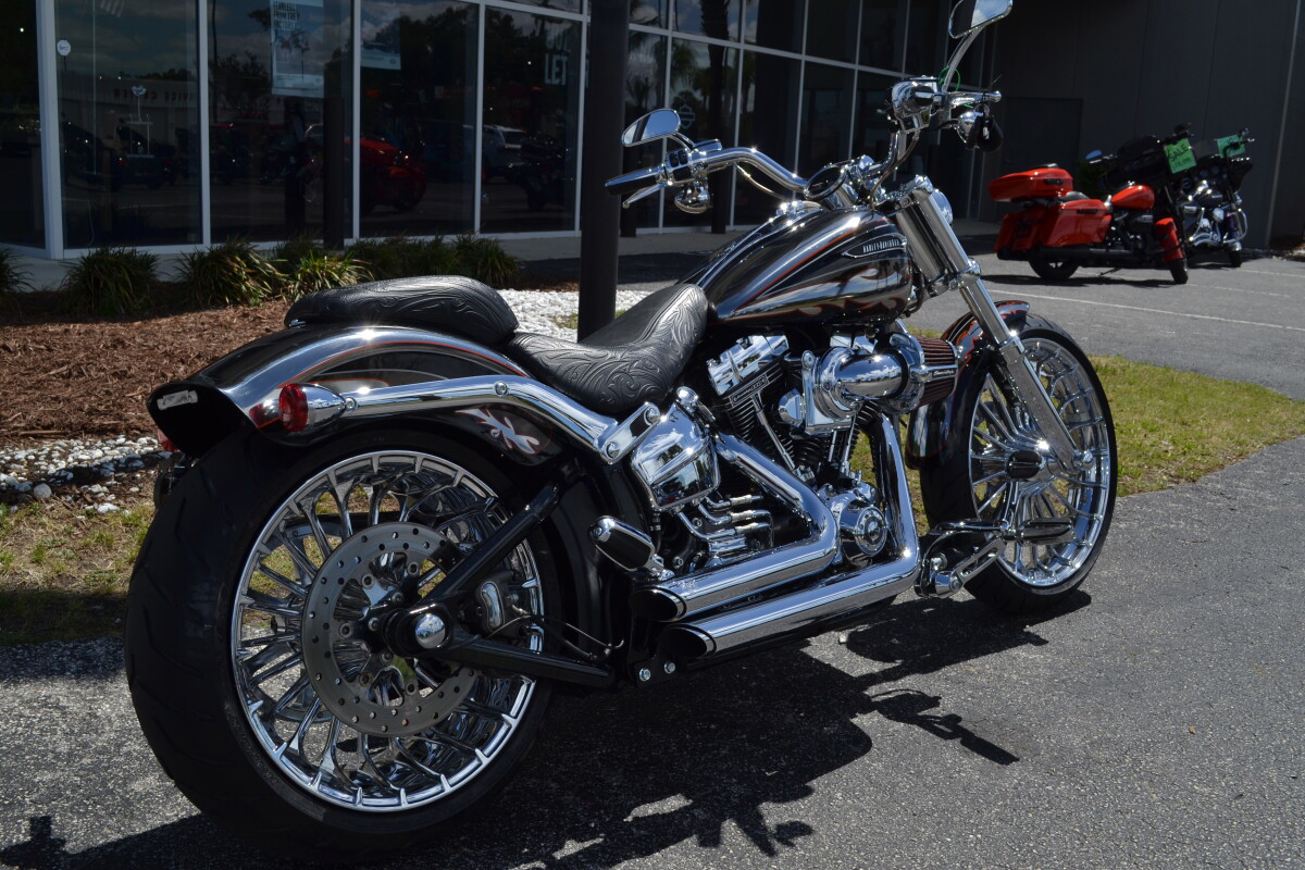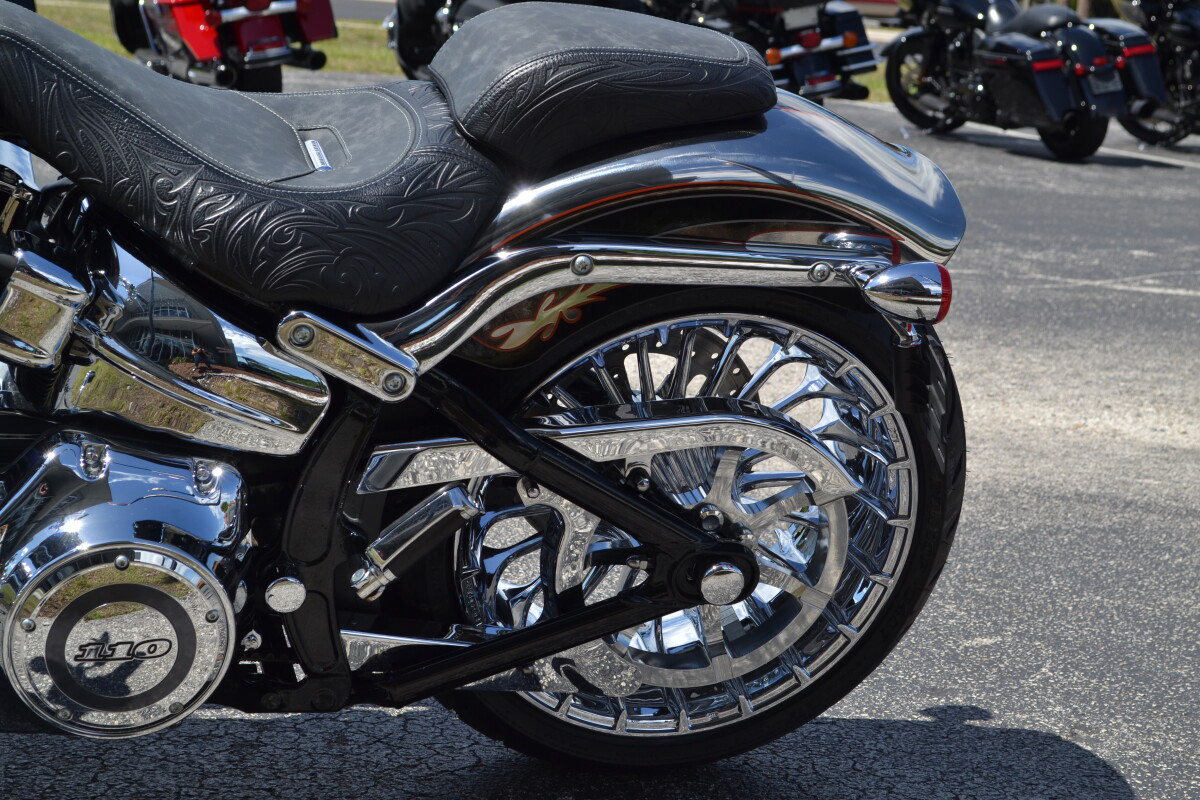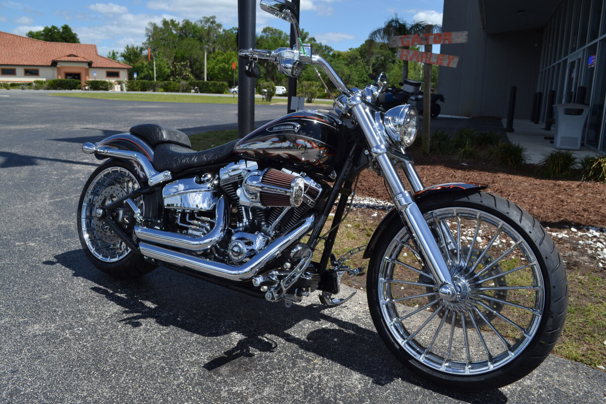 The 2014 CVO Breakout is a premium custom motorcycle that mixes top-of-the-line features and detailing with a low, long and slammed power profile. Individually crafted and hand-finished, it features high-impact unique polished metal paint with hand-crafted graphics. Driven by a powerful Twin Cam 110 engine it has 110 cubic inches of power, a low cruising rpm for comfort and massive torque for performance. The CVO Breakout has a chopped, slammed custom style that's low, long and aggressive. Its LED headlights and two-piece saddle with pillion are high quality features that add distinctive custom styling.