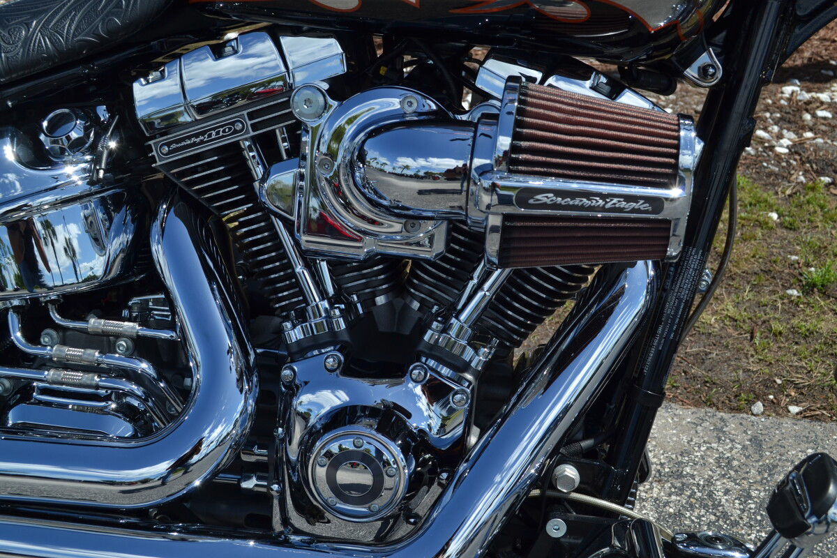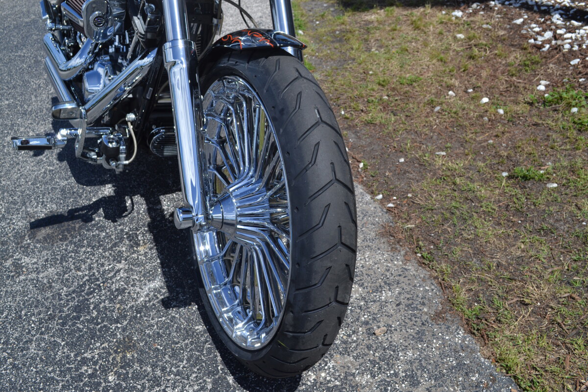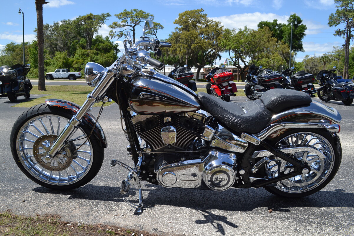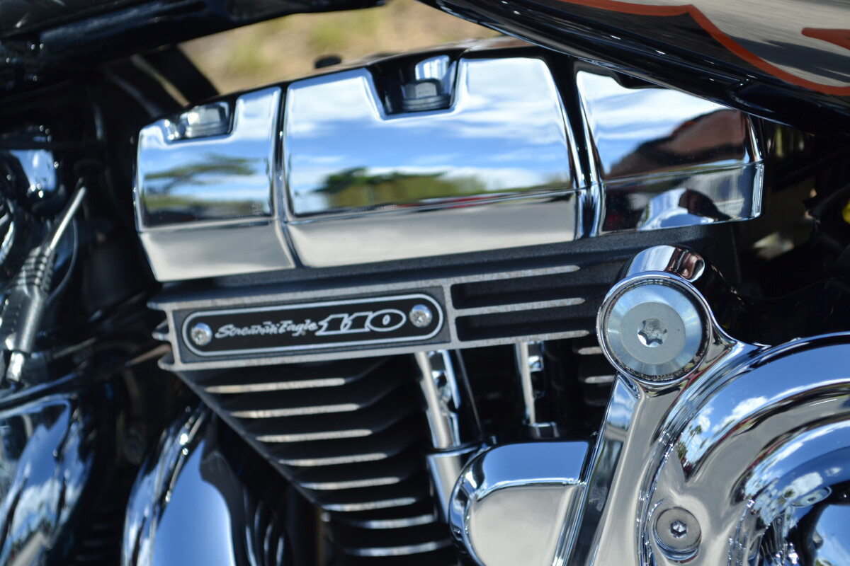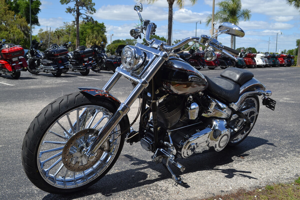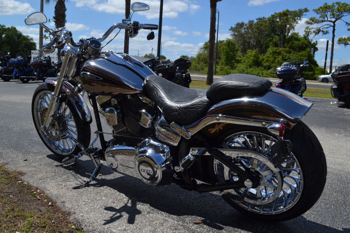 The 2014 CVO Breakout is a premium custom motorcycle that mixes top-of-the-line features and detailing with a low, long and slammed power profile. Individually crafted and hand-finished, it features high-impact unique polished metal paint with hand-crafted graphics. Driven by a powerful Twin Cam 110 engine it has 110 cubic inches of power, a low cruising rpm for comfort and massive torque for performance. The CVO Breakout has a chopped, slammed custom style that's low, long and aggressive. Its LED headlights and two-piece saddle with pillion are high quality features that add distinctive custom styling.