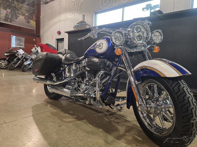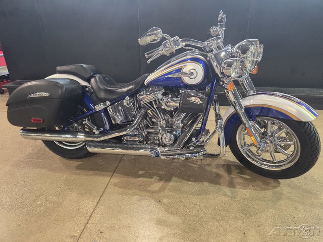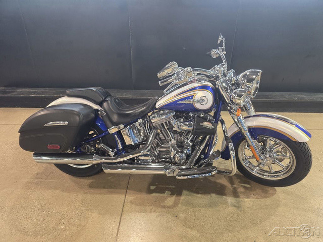 2014 Harley-Davidson® CVO™ Softail® DeluxeThe CVO™ Softail® Deluxe combines big features with an easy riding attitude. The low seat and dropped down center of gravity make handling a breeze. And a detachable windshield and saddlebags come off quick when you feel like stripping down.The 2014 Harley-Davidson® CVO™ motorcycles are full of high-end custom style and fully-equipped with performance features. New to the CVO™ family for 2014, the limited-availability Harley-Davidson® CVO™ Softail® Deluxe FLSTNE model is a premium-quality hardtail motorcycle cruiser that offers top-of-the-line features and detailing. Everything on the FLSTNE CVO™ Deluxe is taken a little further for ultimate comfort, finishes, and performance. The CVO™ Softail® Deluxe FLSTNE model is powered by the Harley-Davidson® company’s most massive engine: the big V-Twin Cam 110™ engine with Screamin' Eagle badges. Individually crafted and hand-finished, high-impact paint and graphics come standard on the custom CVO™ Softail® Deluxe. The Harley® fenders on the CVO™ Softail® Deluxe model are true retro style with their long lines and chrome Harley® fender tips. And each fender says Deluxe so everyone will know how you roll. The Harley® CVO™ Deluxe model has a wide front end fork and gorgeous 7-inch ball motorcycle headlamp. Whitewall tires give this motorcycle cruiser a 1950s boulevard retro motorcycle look. The H-D® CVO™ Deluxe model features a powerful air-cooled Twin Cam 110™ Harley® engine with 6-speed cruise drive transmission, providing more performance power for passing, hill-climbing, and riding with passenger and luggage. Ride in premium comfort and style with the FLSTNE model’s classic two-up seat—at a lowdown 24.5 inches, it's among the lowest seat heights you'll find, with 'collapsing' sides that create a narrow seat profile, and a detachable. passenger seat pillion. Plus, we've added some ergonomics to make riding solo or duo even easier.Features May Include:Exclusive CVO™ EnhancementsAll the quality. All the legacy of the Harley-Davidson® name. Plus custom touches and performance that distinguish you from every other bike on the road. Sure there's a little vanity. Premium custom. Big, tricked-out wheels. Deep attention to details. The perfect storm of engineering and style you'll only find on a custom machine. And you'll spoil yourself with the accessories—from comfort to electronics to chrome. But the real signature of a Harley-Davidson® Custom Vehicle Operations™ motorcycle is the explosive power and sleek detailing of the huge Twin Cam 110™ engine with Screamin' Eagle® engine badges.Pure Harley-Davidson® StylingPure. Dripping with power. A jewel machined out of metal. There's no mistaking the roots of the Twin Cam 110™ with Screamin' Eagle® engine badges: authentic Harley-Davidson® style through and through, with an attention to detail you'll get from no other motorcycle company. Its granite-colored heads and cylinders feature machined cooling fin tips and are highlighted by chrome rocker covers and Twin Cam 110™ engine badging. it's a pure, powerful declaration of the value of staying true to what satisfies the rider.Brembo® BrakesConfidence. Control. High-performance dual disc Brembo® brakes offer consistent stopping power. The 4-piston front and rear calipers with single front rotor brake system is state of the art and top of the line. It's just another way The Motor Company puts a high level of detail into their bikes to give you peace of mind throughout your journey.Anti Lock BrakesWhen it comes to the CVO™ Softail® Deluxe model with ABS, "stopping power" has a double meaning. The components of our ABS are tastefully hidden within the wheel hub, so you'll still turn heads with clean, streamlined design.