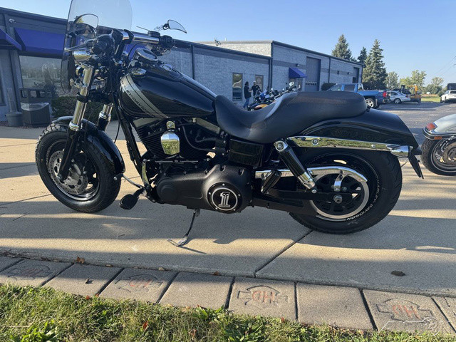 NICE BIKE! Has Stage 3 kit with Tuner, Pipes 2014 Harley-Davidson® Dyna® Fat Bob®The all-new Fat Bob® motorcycle. Blacked out finishes, slash cut mufflers, one-of-a-kind tank graphics. Surly attitude hits a new high.The 2014 Harley-Davidson® Dyna® Fat Bob® FXDF model is a Dark Custom™ cruiser with a big motorcycle feel. The Harley® Fat Bob model features a powerful air-cooled Twin Cam 103™ Harley® engine with 6 speed cruise drive transmission, providing more performance power for passing, hill-climbing, and riding with passenger and cargo. For the custom style you want, the Fat Bob® model motorcycle's beefy drag handlebar is truly reminiscent of an aggressive quarter mile monster. And with the wires routed through the steel, you get a clean, minimal look with nothing standing in your way of the open road. Add to that the wide stance and 16 inch front wheel, and you have a cool fat custom look with a powerful big twin engine. If you like the style of the blacked out, Dark Custom™ street brawling motorcycle, the Fat Bob® was built for you. From the aluminum triple clamps and battery box cover to the headlight trim ring and rear shock covers, this thick-cut, menacing bad boy is blacked out from top to bottom, nose to tail. The high performance coil-over rear chrome shocks give a smooth ride and custom look.Features may include:Blacked Out FinishesThe 2014 Fat Bob® proves there’s no such thing as too much black. From the aluminum triple clamps and battery box cover to the headlight trim ring and rear shock covers, this thick-cut, menacing bad boy is blacked out from top to bottom, nose to tail. Go ahead. Flash some black.Blunt Cut MufflersThis devil is all the way in these details. New blunt cut mufflers perfectly complement the aggressive lines of the rear fender, black-covered shocks and tank graphics. This is the Harley-Davidson® attention to detail. And it’s the reason our bikes have been grabbing attention for over 110 years.Six-Speed Cruise Drive® TransmissionYou want a ride that rumbles—not begs for mercy—when you lean on it a little. The Six-Speed Cruise Drive® transmission provides smooth, quiet shifting and reduces engine speed on the highway, so you get a better match between engine turnover and road speed. It's a rare ride when a bike responds like this, and a low growl goes a long way when you're opening up the road ahead.Adjustable SuspensionEasily adjust preload with a spanner wrench to suit your suspension to your riding style. The slammed low rear suspension gives you a more laid-back riding position and style. Low-profile, kicked back for profiling down the boulevard and hugging corners.Forward-Mounted ControlsWith the custom forward-mounted controls on the Fat Bob® model, you can kick back a little and stretch your legs for the ultimate cruise through town or across the state line. It's time to take in the open road the way you were meant to—on a two-wheeled machine that's built to outdo the rest.