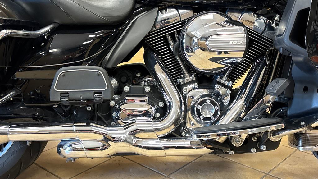 The 2014 Harley-Davidson® Ultra Limited model FLHTK is a premium featured touring bike full of authentic Harley-Davidson® grand American touring style. Long distance riding has never been better. As part of Project RushMore, the Ultra Limited has been redesigned for 2014 and features a new twin-cooled high output Twin Cam 103™ Harley® engine with more low-end torque and passing power. The new Twin Cam 103™ is mated to a smooth-shifting 6 speed cruise drive transmission for low rpm at highway speeds. For 2014, the Ultra Limited has more room and touring comfort for the passenger and a redesigned iconic batwing fairing to reduce head buffeting.
