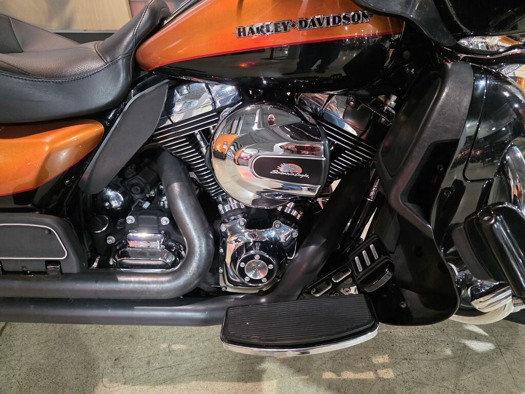 The 2014 Harley-Davidson Ultra Limited model FLHTK is a premium featured touring bike full of authentic Harley-Davidson grand American touring style. Long distance riding has never been better. As part of Project RushMore, the Ultra Limited has been redesigned for 2014 and features a new twin-cooled high output Twin Cam 103 Harley engine with more low-end torque and passing power. The new Twin Cam 103 is mated to a smooth-shifting 6 speed cruise drive transmission for low rpm at highway speeds. For 2014, the Ultra Limited has more room and touring comfort for the passenger and a redesigned iconic batwing fairing to reduce head buffeting.
