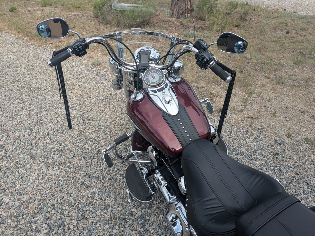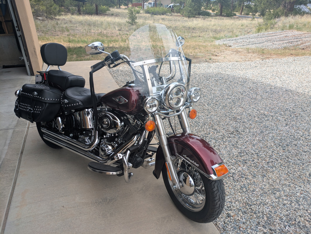 2014 Heritage Softail Classic Cruiser. Beautiful bike! Lots of chrome!! This bike has very low miles, has always been covered and garaged. Many upgrades include Vance Hines pipes that have been tuned for an additioanl 12 HP, Windshield, LED lights, custom foot pegs, highway touring bar/pegs, grips, tassels, alarm system, custom made touring bag with lumbar support, and good tread on the tires. Also included-Harley Davidson bike cover and trickle charger. All maintenance completed by the dealer.