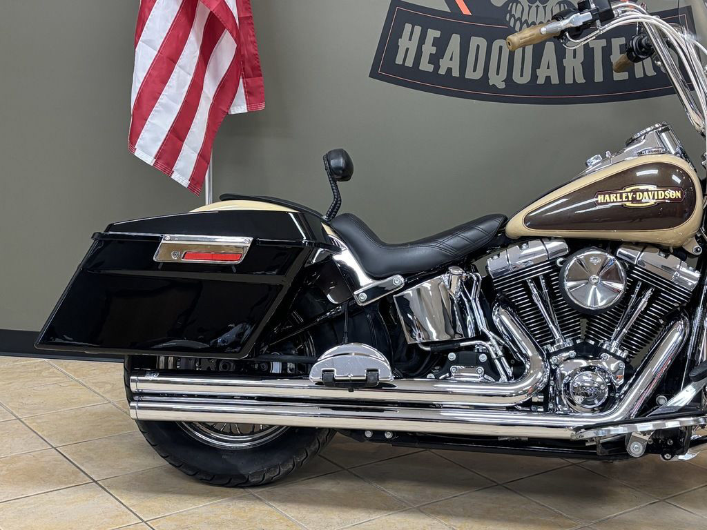 If you want a comfortable bike but love that rigid-suspension look, you've come to the right bike. We've kept all the modern comforts where they belong—below the surface of a rad, vintage-looking bike. You get the classic lines of a vintage "hardtail" frame with the horizontal rear shocks hidden in the guts. It's a signature rigid look, and you'll only find it on a Softail® model.