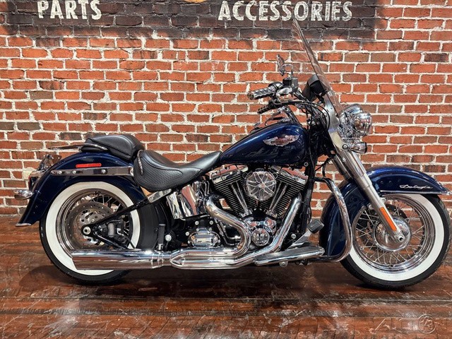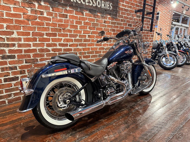 2014 Harley-Davidson® Softail® DeluxePure nostalgic beauty wrapped around completely modern power and performance.The 2014 Harley-Davidson® Softail® Deluxe FLSTN model is a hardtail motorcycle cruiser with authentic Harley® style. The Softail® Deluxe comes with optional Hard Candy Custom™ paint, a large metal flake paint finish that recalls the iconic styling of '70s custom bikes, and offers blazing color showing through a deep, finish. The Harley® fenders on the Softail® Deluxe model are true retro style with their long lines and chrome Harley® fender tips. And each fender says Deluxe so everyone will know how you roll. The Harley® Softail® Deluxe model has a wide front end fork and gorgeous 7 inch ball motorcycle headlamp. Whitewall tires give this motorcycle cruiser a 1950s boulevard retro motorcycle look. The H-D® Softail® Deluxe model features a powerful air-cooled Twin Cam 103™ Harley® engine with 6 speed cruise drive transmission, providing more performance power for passing, hill-climbing, and riding with passenger and luggage. Hit the road in style with this classic two up FLSTN Softail® Deluxe model’s seat. At a lowdown 24.5 inches, it's among the lowest seat heights you'll find. And we've added some ergonomics to make riding solo or duo even easier, especially for riders with a shorter inseam. 'Collapsing' sides create a narrow seat profile, and the passenger seat pillion is detachable.Features may include:Hidden Rear ShocksIf you want a comfortable bike but love that rigid-suspension look, you've come to the right bike. We've kept all the modern comforts where they belong—below the surface of a rad, vintage-looking bike. You get the classic lines of a vintage "hardtail" frame with the horizontal rear shocks hidden in the guts. It's a signature rigid look, and you'll only find it on a Softail® model.Tank-Mounted ConsoleA big, bold speedometer and odometer display, along with an ancillary display for gear and rpm, offer up the information you need on the fly.Twin Cam 103™ Engine InnovationFire up the Twin Cam 103™ engine and feel the low-end torque unleashed. Thanks to the lightweight piston design, delivery of the added power is more refined than ever. Then put your foot on the shifter and feel how the engine and Six-Speed Cruise Drive® transmission were designed to work together. Six speeds. A strong driveline and strong internal parts. Low routine maintenance. And a low cruising rpm couldn't feel better.Standard Anti-Lock BrakesWhen it comes to the Softail® Deluxe model with ABS, "stopping power" has a double meaning. The components of our ABS are tastefully hidden within the wheel hub, so you'll still turn heads with clean, streamlined design. More importantly, though, you get certainty in the saddle knowing your bike's going to behave when you need it.Dunlop® TiresWhether you're crossing state lines or staying within city limits, you want a confident feeling of sure contact with the road. The front end holds a premium touring tire with a three-ply polyester casing and two fiberglass belts. The back cruiser tire has an advanced tread pattern. Made from a specifically formulated compound, it delivers outstanding grip in wet or dry weather. And since they're from Dunlop®, you know you're wrapping your premium rollers in quality rubber.Full-Length Rider FootboardsYour boots were made for riding, in any way you see fit. Our full-length footboards boast a tried and true design that's stood the test of time. Plenty of foot positions for your taste and comfort. Rubber vibration isolation for a comfortable ride. And heel-toe shifting for confident shifting every time. It takes a few rides, but once you've gotten used to the smooth heel-toe rhythm, you'll never give it up.