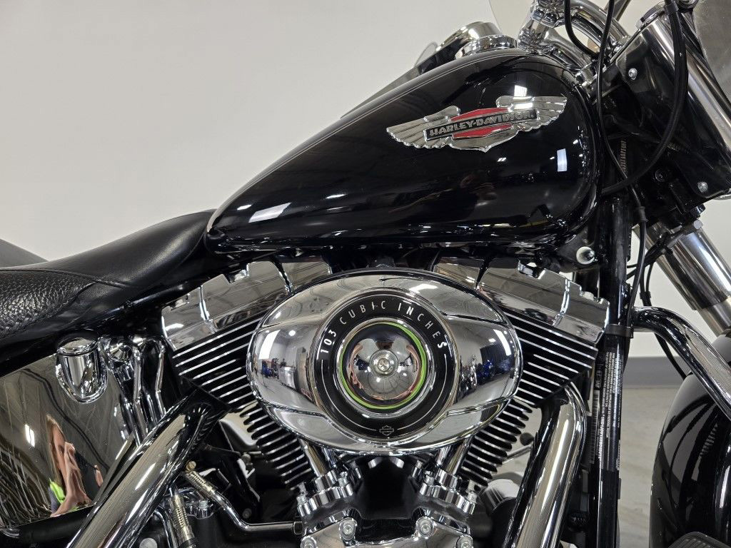 If you want a comfortable bike but love that rigid-suspension look, you've come to the right bike. We've kept all the modern comforts where they belong—below the surface of a rad, vintage-looking bike. You get the classic lines of a vintage "hardtail" frame with the horizontal rear shocks hidden in the guts. It's a signature rigid look, and you'll only find it on a Softail® model.