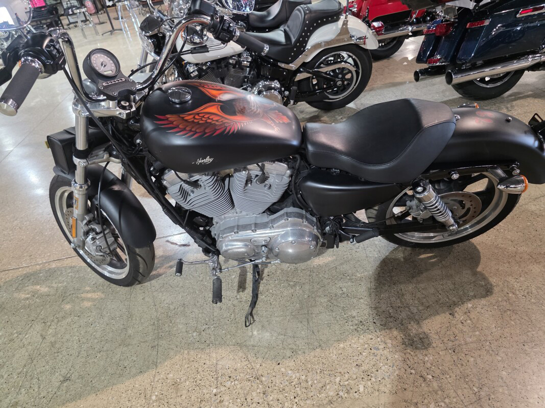 2014 Harley-Davidson Sportster SuperLow Smooth travel riding suspension, comfortable cruising position and easy handling for endless miles. The 2014 Harley-Davidson Sportster SuperLow XL883L has all the motorcycle features you want for easy handling beginner motorcycle. This easy to ride motorcycle offered at an affordable price makes this motorcycle one to try. New for 2014 the Sportster SuperLow XL 883 features a brand new braking system with option anti-lock brakes (ABS) for more confidence on all kinds of road surface. There are also easy-to-operate new hand controls. The Harley SuperLow model features: Sportster tank, longer travel rear suspension, low seat height, and comfortable rider cock-pit. And all SuperLow Sportster model tanks are finished by hand and ooze authentic, premium Harley-Davidson custom style. Take the time to learn about all of the styling features and handling characteristics of the H-D SuperLow model XL883L that make it authentic Harley and a different riding experience from other Sportster models. Also spend some time learning about other Sportster motorcycles including the Dark Custom Forty-Eight model. The 1200 Low model is another one of the custom motorcycles. Find the Harley Sportster model that's right for you! Features may include:Premium Styling Features The value and quality of the confidence-inspiring SuperLow model is unparalleled in its class. With a true Harley-Davidson rumble, steel parts, premium paint and flawless chrome, this model reveals its authentic American motorcycle roots in every inch of detail. Walnut Fuel Tank The 4.5-gallon walnut fuel tank offers spacious fuel capacity for a low-profile tank. It's tough, iconic and it leaves a good amount of room to show off more V-Twin. The tank graphic showcases the unique styling of the SuperLow motorcycle; as if the tank came right off the calligraphers brush. Evolution Engine Heritage The Evolution engine—known in certain crowds as the Blockhead—was first bolted to the frame of a Harley-Davidson motorcycle back in 1984. Born from legendary Shovelhead and Ironhead engines, the Evolution engine broke new ground in displacement innovation while maintaining the hunger for power, durability and proven reliability that The Motor Company was built on. Evolution Engine Innovation Air-cooled and durable as hell, the 883cc Evolution engine is yet another nod to the unwavering work ethic that drives advancements in motor technology at Harley-Davidson. Aluminum heads and cylinders lighten the load of the bike and improve air-cooling efficiency. Electronic fuel injection says goodbye to carburetors and boasts increased reliability and less routine maintenance. Bottom line: the rubber-mounted Evolution engine runs hard and rides smooth for thousands of miles so you can just worry about taking in the freedom of the open road. Pure Harley-Davidson Styling Feast your eyes on the 883cc Evolution engine and there's no mistaking its roots. This is authentic Harley-Davidson style through and through with an attention to detail you won't find from any other motorcycle company. Silver powder-coated cylinders and cylinder heads are topped off with polished rocker covers to complete the premium Harley-Davidson look. Unmatched style and performance down to the very last detail. It's a jewel machined out of metal. Pure. Dripping with power. From the classic edge of the cooling fins to the clean lines of cases and covers—the 883cc Evolution engine makes an ironclad statement to holding on to what's right and staying true to what satisfies the rider.